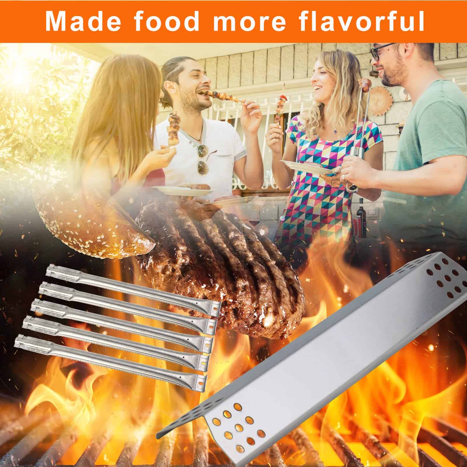 Kit de Reparación de Piezas de Recambio para Jenn-Air 720-0709, 720-0709B, 720-0720, 720-0727, 730-0709, Members Mark 720-0709B y Otros Modelos de Parrillas de Gas, Placa de Calor Protectora y Tubo Quemador, Paquete de 5. Este kit de reparación de piezas de recambio es compatible con una amplia gama de modelos de parrillas de gas, incluyendo Jenn-Air, Members Mark, Outdoor Gourmet, Kitchen Aid y Nexgrill. Las piezas están fabricadas en acero inoxidable de alta calidad, lo que garantiza su durabilidad y resistencia al calor y la corrosión. ¡Haz tu pedido ahora y mantén tu parrilla funcionando como nueva!