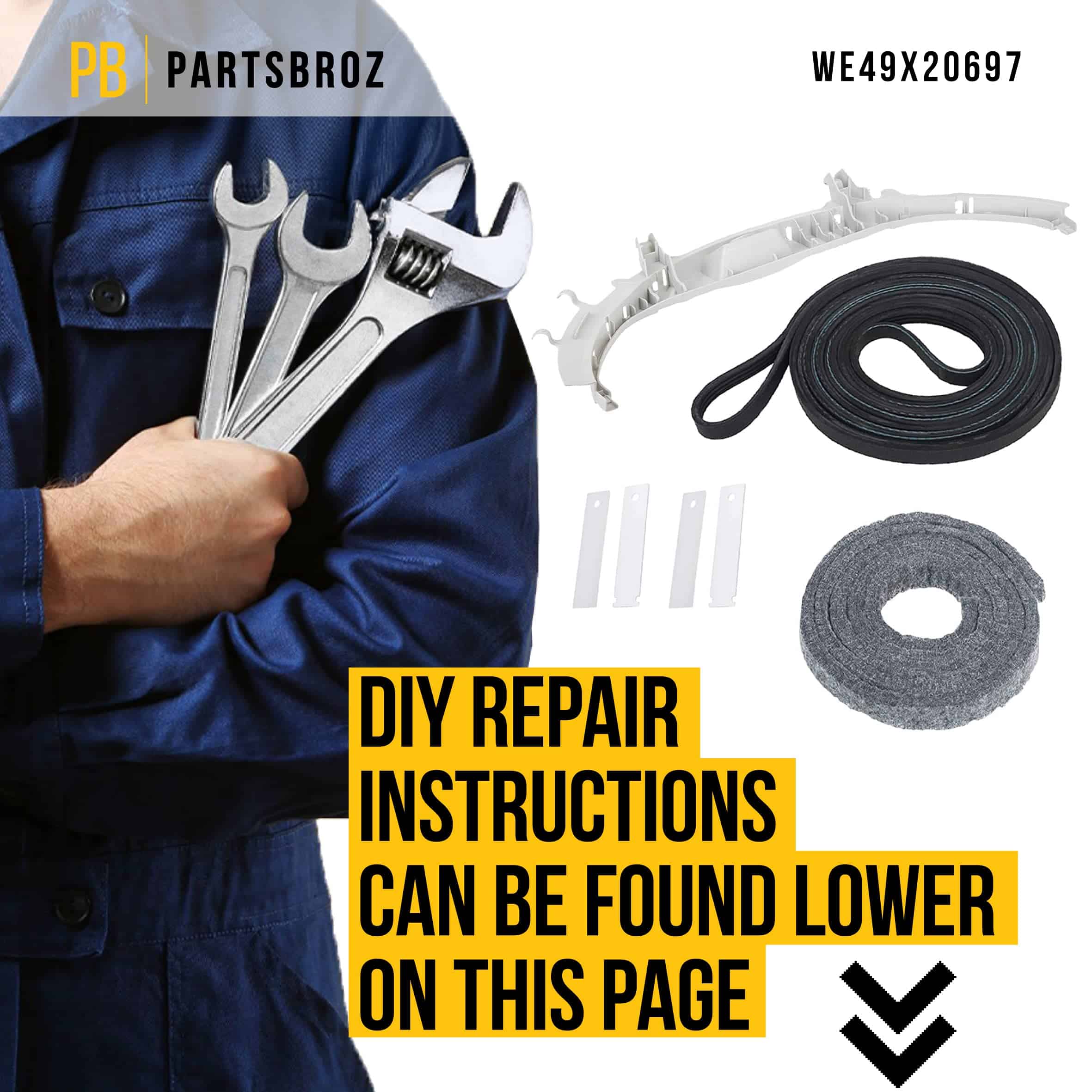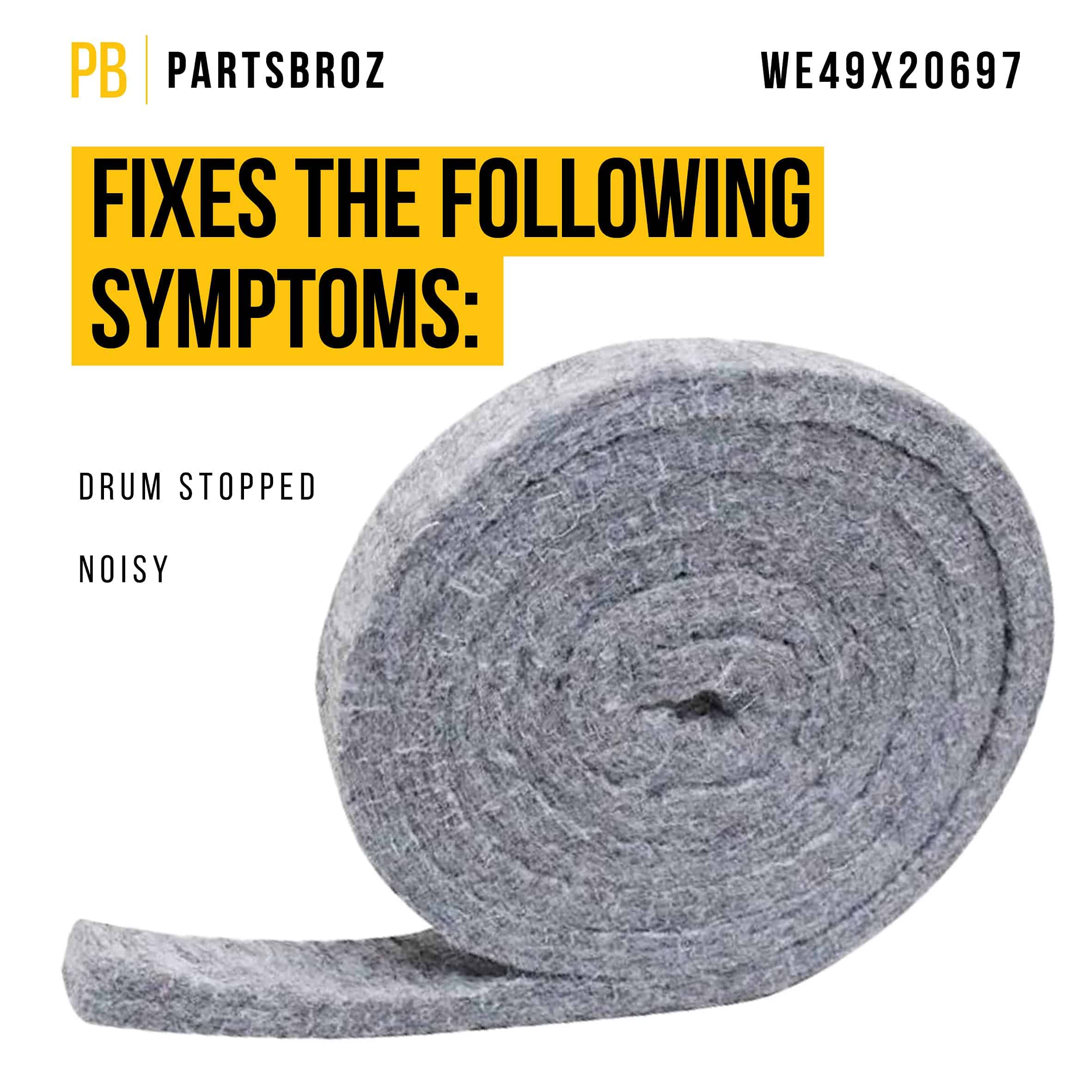 Si un rodamiento de secadora se desgasta, la secadora emitirá ruidos fuertes y chirriantes. El Kit de Reparación de Rodamientos para Secadora WE49X20697 de PartsBroz incluye todo lo necesario para cambiar el rodamiento superior en secadoras de las marcas GE y Hotpoint. Este kit de alta calidad es duradero y fácil de instalar. Incluye: 1 rodamiento superior (WE3M26); 1 correa (WE12M29); 2 deslizadores (WE1M333/WE1M504); 2 deslizadores (WE1M481/WE1M1067); 1 tira de fieltro (WE9M30/WE09X20441). Consejos de instalación: desconecte la secadora de la fuente de alimentación antes de comenzar la reparación. Herramientas que podría necesitar incluyen un destornillador Phillips, un destornillador de cabeza plana y un driver de tuercas de 1/4 de pulgada. Marcas y modelos compatibles incluyen pero no se limitan a: Hotpoint: HTDP120ED0WW, HTDP120ED1WW, HTDP120ED2WW, HTDP120ED3WW, HTDP120ED4WW, HTDP120ED5WW, HTDP120ED6WW, GE: BWXR473ET0WW, BWXR473ET2WW, BWXR473ET3WW, etc. Este kit de alta calidad reemplaza directamente los números de parte WE49X20697, AP5806906 y PS9493092. Contáctenos si tiene alguna pregunta sobre la compatibilidad. Estamos encantados de ayudarle a seleccionar la pieza adecuada para su secadora.