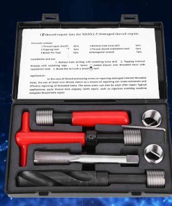 Este kit de reparación de roscas Jeanoko es perfecto para restaurar roscas dañadas en piezas automotrices y es ideal para reparaciones automotrices. Contiene una broca en espiral, un grifo, una llave, un rompecabezas, una llave hexagonal y cinco inserciones roscadas. La inserción roscada se coloca en el agujero del tornillo de la pieza de trabajo, como la aleación de aluminio, para formar una rosca hembra estándar de alta resistencia, resistente al desgaste, de alta precisión y puede absorber la vibración. Es versátil y puede usarse para reparar de manera económica y eficaz el agujero roscado. Adecuado para una variedad de aplicaciones como interruptores de alta tensión, comunicaciones por microondas, piezas de automóviles y equipos de separación de aire. El kit está fabricado con material de acero inoxidable de alta calidad para garantizar fuerza y durabilidad. Es reutilizable, ya que la dureza del tornillo de alambre es mayor que la del tornillo, por lo que tiene poco desgaste en la conexión con el tornillo y se puede usar repetidamente. Este kit de reparación de roscas resistente al desgaste prolongará la vida de las roscas y es ideal para aplicaciones que requieren desmontajes frecuentes.