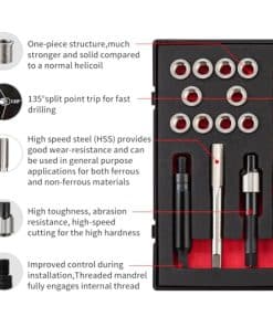 Los insertos de acero sólido son mucho más fuertes y duraderos que los helicoils tradicionales, lo que garantiza una mayor resistencia y durabilidad en las reparaciones. Además, el diseño especial del escariador permite crear un labio empotrado que mejora significativamente la inserción de los insertos.