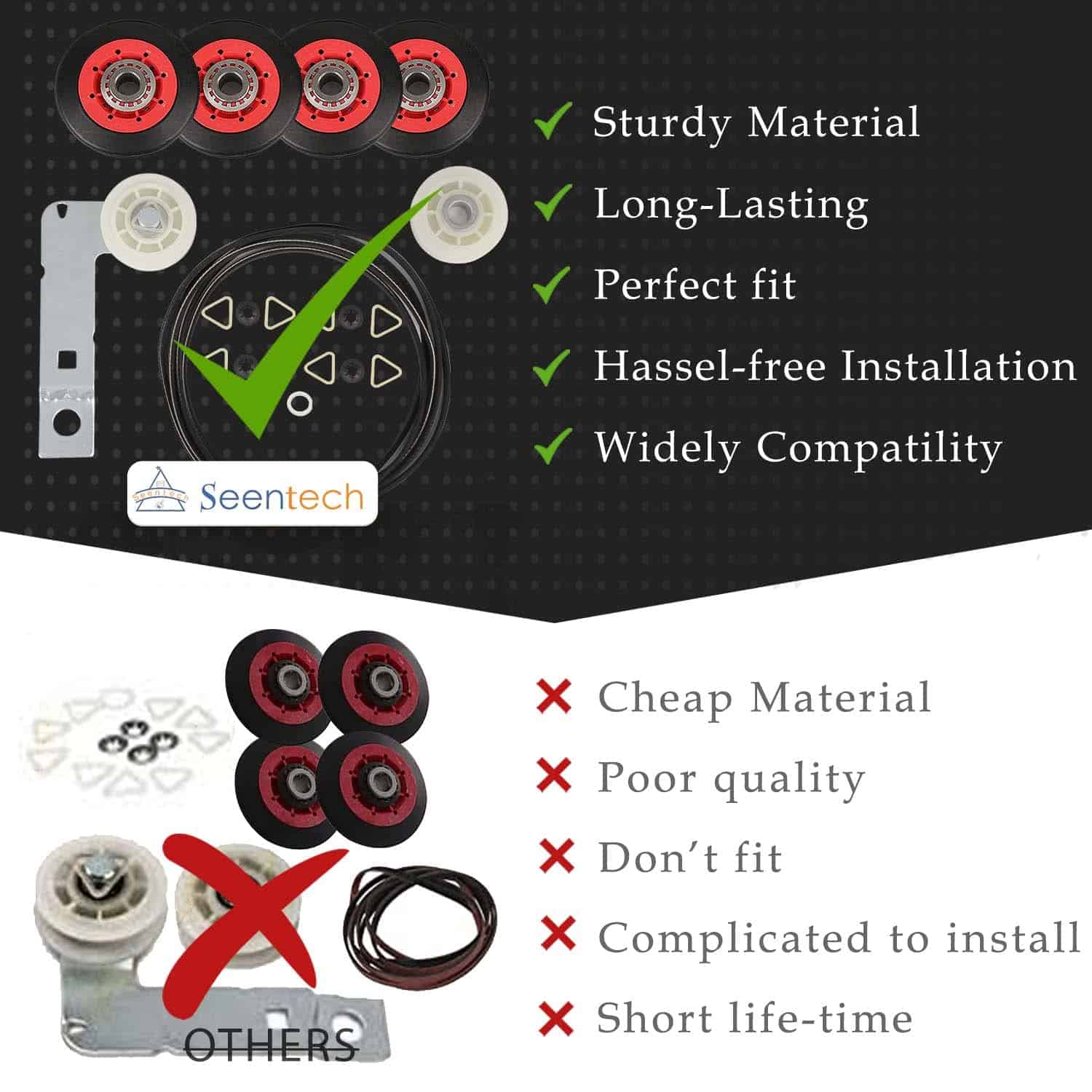 El Kit de Reparación de Secadora 4392067 y la Polea de Tensión de Secadora W10837240 están fabricados con material duradero de alta calidad y han sido probados por el fabricante para garantizar un rendimiento duradero y efectivo. Compatible con marcas como Whirlpool Duet, Kenmore Elite, May-tag Centennial Front Load Gas Electric Dryer y más. Fácil de instalar, ahorrando tiempo y esfuerzo, lo que puede ayudarte a ahorrar en costos de mantenimiento. Este producto cuenta con garantía de devolución del dinero de 30 días para una experiencia de compra sin preocupaciones. Si tienes alguna pregunta, ponte en contacto con nuestro servicio al cliente.