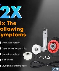 Incremente la eficiencia de su secadora con nuestro Kit de Reparación de Secadora Premium, diseñado expertamente para modelos populares como MDG17MNAAW2, MDG17MNBGW0 y WGD7300XW0. Este kit todo en uno proporciona todo lo que necesita para resolver problemas comunes de secadora, incluyendo funcionamiento ruidoso, falta de encendido y rendimiento de secado inadecuado. Características clave: Solución de reparación completa: El kit incluye: 4 x Rodillos de soporte de tambor WPW10314173 (4 ruedas rojas, 8 anillos tri y 4 arandelas de retención): Hechos de materiales de goma y plástico de alta calidad, más duraderos y fuertes. Piezas de repuesto: 3388342, 3389902, 3396801, 3396802, 3401846, 8536973, 8536974, W10314171, W10314173, W10756057, WPW10314173VP, 1925071, AP6019303, PS11752609, EAP11752609. 1 x Polea de correa de tambor de secadora 279640 (la rueda de la polea mantiene la tensión en la correa de la secadora). Materiales de plástico y metal robustos garantizados para no romperse ni torcerse, extendiendo considerablemente su vida útil. Piezas de repuesto: 3387372, 3388674, W10118754, W10118756, W10547287, W10837240VP, W10547290. 1 x Correa de tambor de secadora 661570V (93 1/2″ de largo): Las correas fuertes son extremadamente elásticas y giran los rodillos para una mayor eficiencia. Piezas de repuesto: 339728, 661570, 3387610, 3389728, 3393999, 661570VP, 4248258, AP5983729, EAP382430, PS382430. Compatibilidad amplia: Este kit versátil es compatible con Maytag, Whirlpool y Kenmore, se ajusta a una variedad de modelos incluyendo MEDE500VW1 MEDC215EW1 MEDB835DW3, etc. Componentes de alta calidad: Fabricados con materiales de primera calidad, nuestras piezas están diseñadas para la durabilidad, minimizando el ruido y mejorando el rendimiento general de la secadora. Instalación fácil: Diseñado para los entusiastas del bricolaje, este kit de reparación viene con instrucciones claras y paso a paso para una instalación sin complicaciones. Reúna sus herramientas básicas, desconecte su secadora y siga nuestra guía para un proceso de reparación rápido y eficiente.