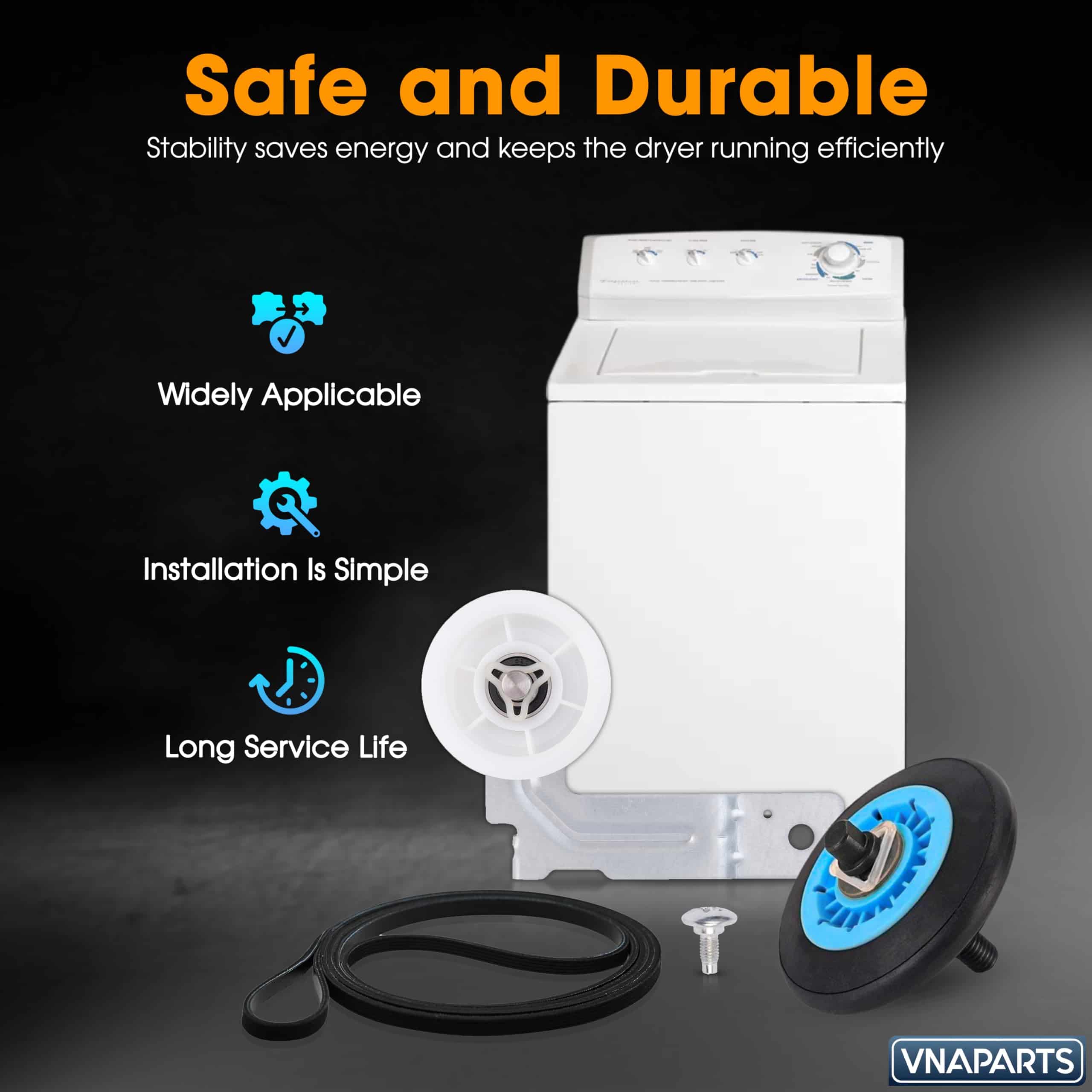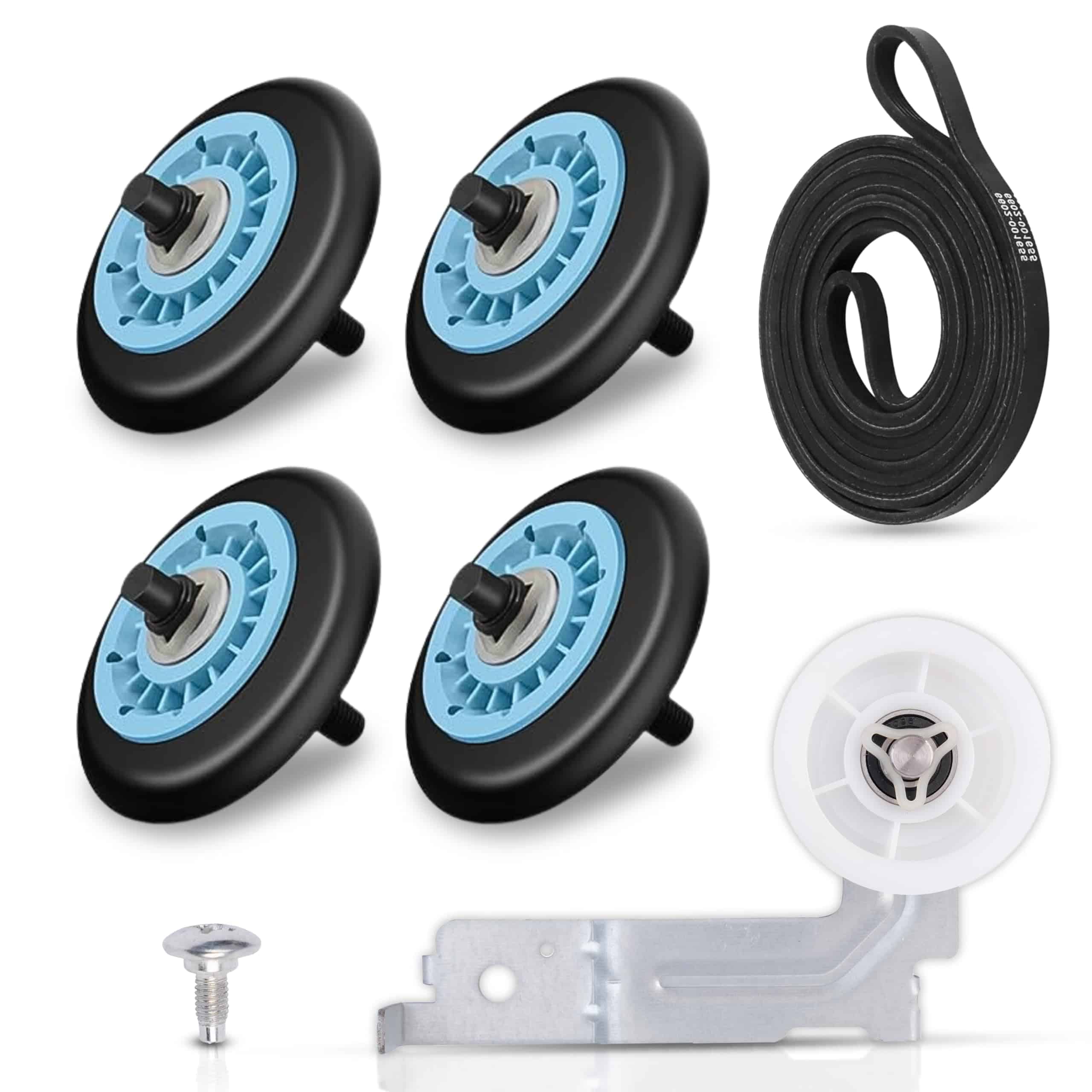 Revitalice el rendimiento de su secadora con nuestro completo Kit de Reparación de Secadora, diseñado para abordar una variedad de problemas comunes. Este kit todo en uno incluye todo lo necesario para una reparación exitosa, con 4 duraderos rodillos de tambor para secadora, una robusta polea de la correa DC93-00634A mejorada, una correa para secadora 6602-001655 resistente, un tornillo para la instalación y un resorte de tensión DC61-01215B. Si tiene problemas como una secadora ruidosa, una máquina que no arranca, calefacción insuficiente o un tambor que se niega a girar, este kit es la solución perfecta. Cada componente está fabricado con materiales de alta calidad para garantizar máxima durabilidad y rendimiento. Los rodillos del tambor están hechos de materiales resistentes al desgaste que minimizan el ruido y garantizan un funcionamiento suave. La correa para secadora está diseñada para ser el doble de gruesa que las correas estándar, proporcionando una resistencia excepcional. El diseño triangular de la polea del tensor mejora la estabilidad y mantiene una tensión constante para una funcionalidad óptima. La instalación es fácil con instrucciones claras y paso a paso incluidas en el kit. Simplemente desconecte su secadora antes de comenzar la reparación. Solo necesitará herramientas básicas como guantes de trabajo y un destornillador, y puede ser útil ver videos tutoriales en línea para obtener orientación adicional. Compatible con modelos de secadora de Samsung, Amana y Kenmore, este kit de reparación garantiza que pueda restaurar la eficiencia y confiabilidad de su secadora en poco tiempo. ¡Disfrute de la tranquilidad que viene con una secadora que funciona correctamente y ahorre en costosas llamadas de servicio!