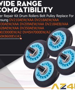 El paquete incluye: 4 x rodillos de tambor de secadora DC97-16782A, 1 x correa de accionamiento de secadora 6602-001655 y 1 x polea de secadora DC93-00634A. Nota: -Si no estás seguro de la compatibilidad, por favor contáctanos para recibir asesoramiento. Resolveremos tu problema en un plazo de 24 horas. Identificación del modelo: el siguiente modelo de tu modelo es 00, 0000, 01, 0001, 02, 0002 a 0004, esto seguirá siendo adecuado. NÚMEROS DE MODELO EN LOS QUE SE AJUSTA ESTA PARTE. (Usa Ctrl + F para BUSCAR tu número de modelo) DV42H5200GF/A3 DV361GWBEWR/A3 DV45H7200EW/A2 DV50K7500GW/A3 DV48J7700GW/A2 DV45H7000GP/A3 DV209AGW/XAA DV45H7000EP/A3 DV419AGW/XAA DV45H6300GG/A3 DV50K7500EW/A3 DV350AEP/XAA DV218AEW/XAA DV330AEW/XAA DV218AEB/XAA DV50K8600EV/A3 DV52J8700EP/A2 DVE50M7450W/A3 DV328AEW/XAA DV210AEW/XAA DV330AEB/XAA DV395ETPASU/A1 DV400EWHDWR/AA DV405ETPASU/AA DV45H7000EW/A2 DV45H7000GW/A2 DV45K6200EZ/A3 DV50F9A7EVW/A2 DV56H9000EP/A2 DV209AEW/XAA DV40J3000EW/A2 DV40J3000GW DV410AEW/XAA DV42H5200GW/A3 DV448AEP/XAA DV448AEW/XAA DV48H7400EW/A2 DV42H5200EF/A3 DV48H7400GW/A2 DV48J7700EW/A2 DV48J7770EP/A2 DV365ETBGWR/A3 DV220AEW/XAA DV42H5200GP/A3 DV56H9100GW/A2 DV42H5200EP/A3 DV42H5200EW/A3 DV42H5000GW/A3 DV42H5000EW/A3 DV42h5200EW/A3 DV8H7400W/A2 DV456EWHDSU/AA DV5451AEW/XAA DV5471AEP/XAA DV422EWHDWR/AA DV448AGP/XAA DV456ETHDSU/AA DV405ETPAWR/AA DV407AEW/XAA DV419AEW/XAA DV331AGW/XAA DV350AEW/XAA DV363EWBEUF/A1 DV331AER/XAA DV331AEW/XAA DV361EWBEWR/A3 DV393ETPAWR/A DV393ETPAWR/A1 DV50F9A6EVW/A2 DV42H5400EF/A3 DV395ETPAWR/A1 DV419AEU/XAA DV5471AEW/XAA DV220AGW/XAA DV219AEW/XAA DV210AGW/XAA DV45H6300EG/A3 DVG52M7750W DVG52M8650V DVG54M8750W DVG55M9600V DV45K6500EV/A3 DV45K7600EW/A3 DV42H5200GW