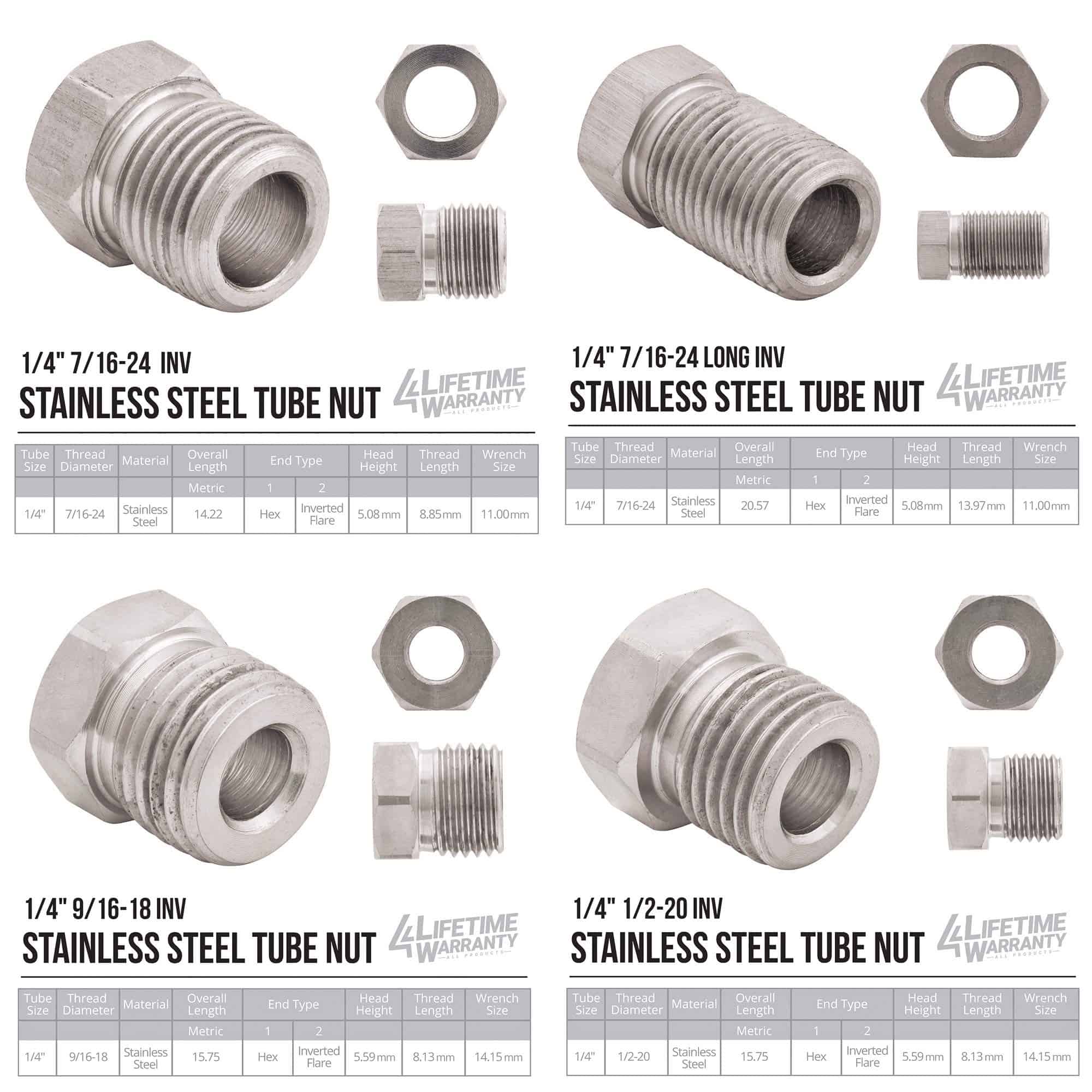 Kit de Tuberías de Frenos de Acero Inoxidable 1/4″ 4LIFETIMELINES 1/4″ x 25 pies Bobina de Repuesto de Tubería de Freno de Acero Inoxidable y Juego de Conexiones, 16 Conexiones Incluidas, Rosca Invertida, Rosca SAE, Espesor de Pared de 0.028″ Tubo y conexiones de acero inoxidable grado marino 316L resistente a la corrosión y el óxido para una protección duradera en líneas de freno de combustible y transmisión de larga duración Incluye 16 conexiones de 1/4 pulgada para una variedad de opciones y compatibilidad con varios modelos de vehículos. Garantizado por 4LifetimeLines.