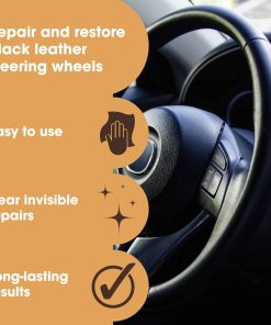 Este práctico Kit de Reparación de Volante de Cuero contiene todo lo necesario para reparar, restaurar y cambiar el color de tu volante de cuero. Nuestro sencillo proceso de 5 pasos fue diseñado pensando en el usuario que prefiere hacerlo él mismo y te proporcionará resultados profesionales. El kit está diseñado para restaurar y reparar cualquier volante de cuero antiguo, desgastado o descolorido. Logra reparaciones casi invisibles que son robustas y te proporcionarán una restauración duradera. Contiene un desengrasante de cuero, un limpiador a base de alcohol, un aglutinante de cuero y un colorante auto sellante para realizar el trabajo de forma efectiva.