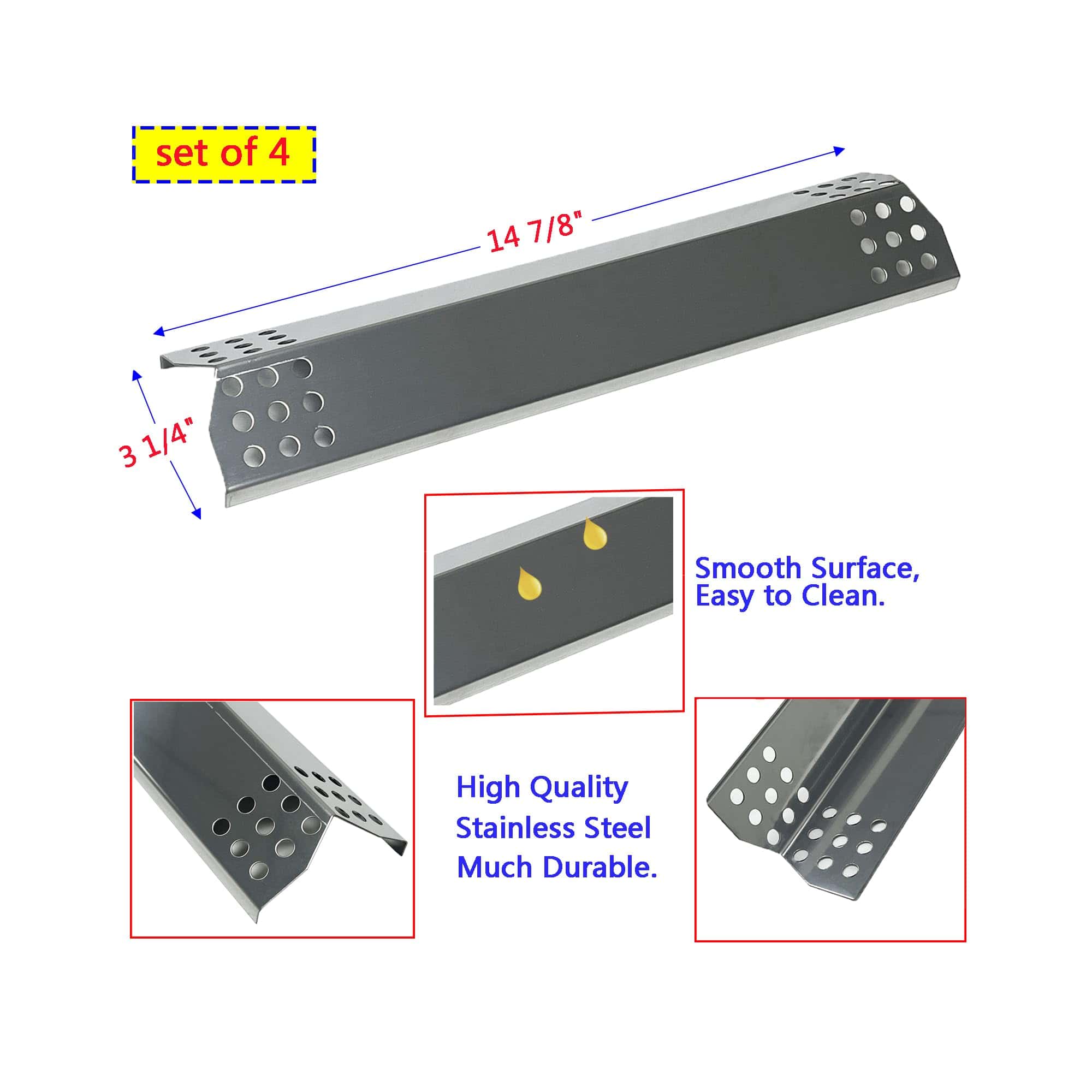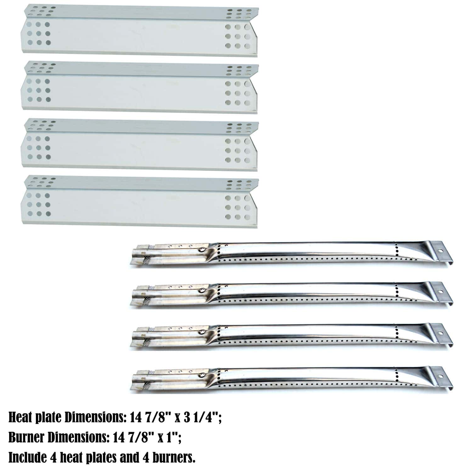 Kit de Reparación Direct Store Parts DG256 de Repuesto para Parrilla de Gas Master Forge 1010037 1010048 Nexgrill 720-0837C 720-0837E (Paquete de 4) Quemadores de Acero Inoxidable y Placas de Calor; Condición: Nuevo. Notas especiales para este artículo: Si está buscando piezas, la MARCA y el MODELO listados a continuación son solo para su referencia. Por favor, verifique nuevamente el TAMAÑO y el MODELO de sus piezas originales antes de comprar. Si tiene algún problema con el artículo, no dude en contactarnos las 24 horas del día, estaremos encantados de responder en un plazo de 24 horas y brindarle una solución satisfactoria. Repuesto para Parrilla de Gas Master Forge 1010037, 1010048, Repuesto para Nexgrill 720-0783C, 720-0783E; Condición: Nuevo. Incluye 4 quemadores de acero inoxidable y 4 placas de calor de acero inoxidable. Dimensiones del quemador: 14 7/8″ x 1″; Material del quemador: Acero inoxidable; Dimensiones de la cubierta de calor: 14 7/8″ x 3 1/4″; Material de la placa de calor: Acero inoxidable. Por favor, VERIFIQUE el tamaño y la forma de sus piezas originales y compárelos con los nuestros antes de realizar el pedido. Fácil de limpiar: Superficie lisa, antiadherente, muy fácil de limpiar. Remoje en agua caliente con detergente durante unos minutos, lave la placa de calor con un cepillo. Manténgalo en un lugar seco. Fácil de instalar: Restauré su parrilla a su eficiencia operativa original con este kit de reparación de repuesto, reemplazar sus piezas viejas y desgastadas puede ayudar a ahorrar tiempo y dinero, y hacer que su parrilla antigua funcione de maravilla, buena protección para su quemador, luz y disperse el calor de manera uniforme, comparable a las piezas originales a un costo reducido, y deshazte de los molestos puntos calientes y piezas oxidadas.