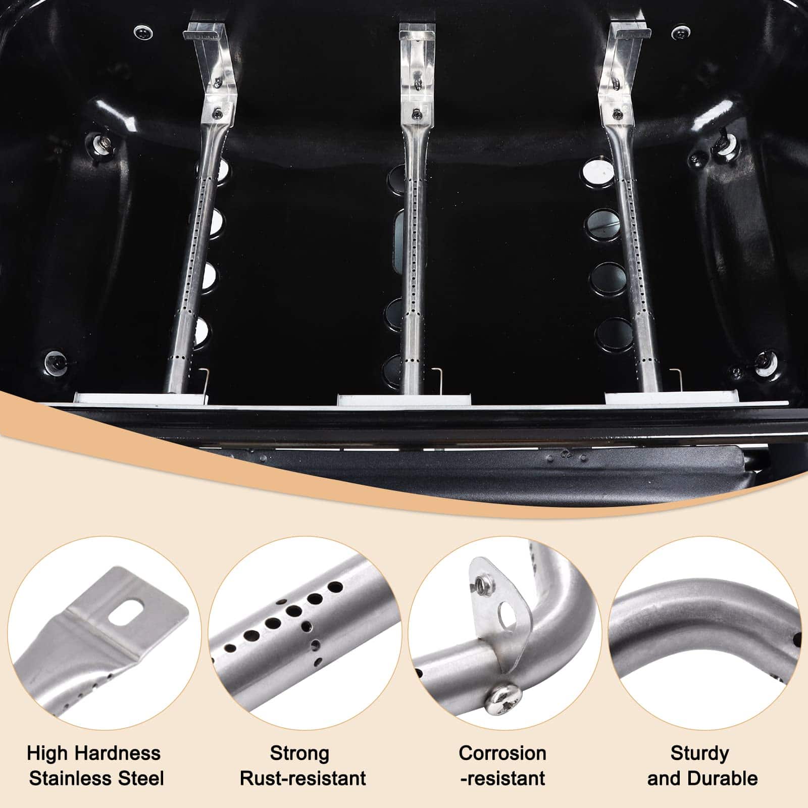 Incluido con la Compra: 3 placas calientes de parrilla de repuesto, 3 quemadores de parrilla