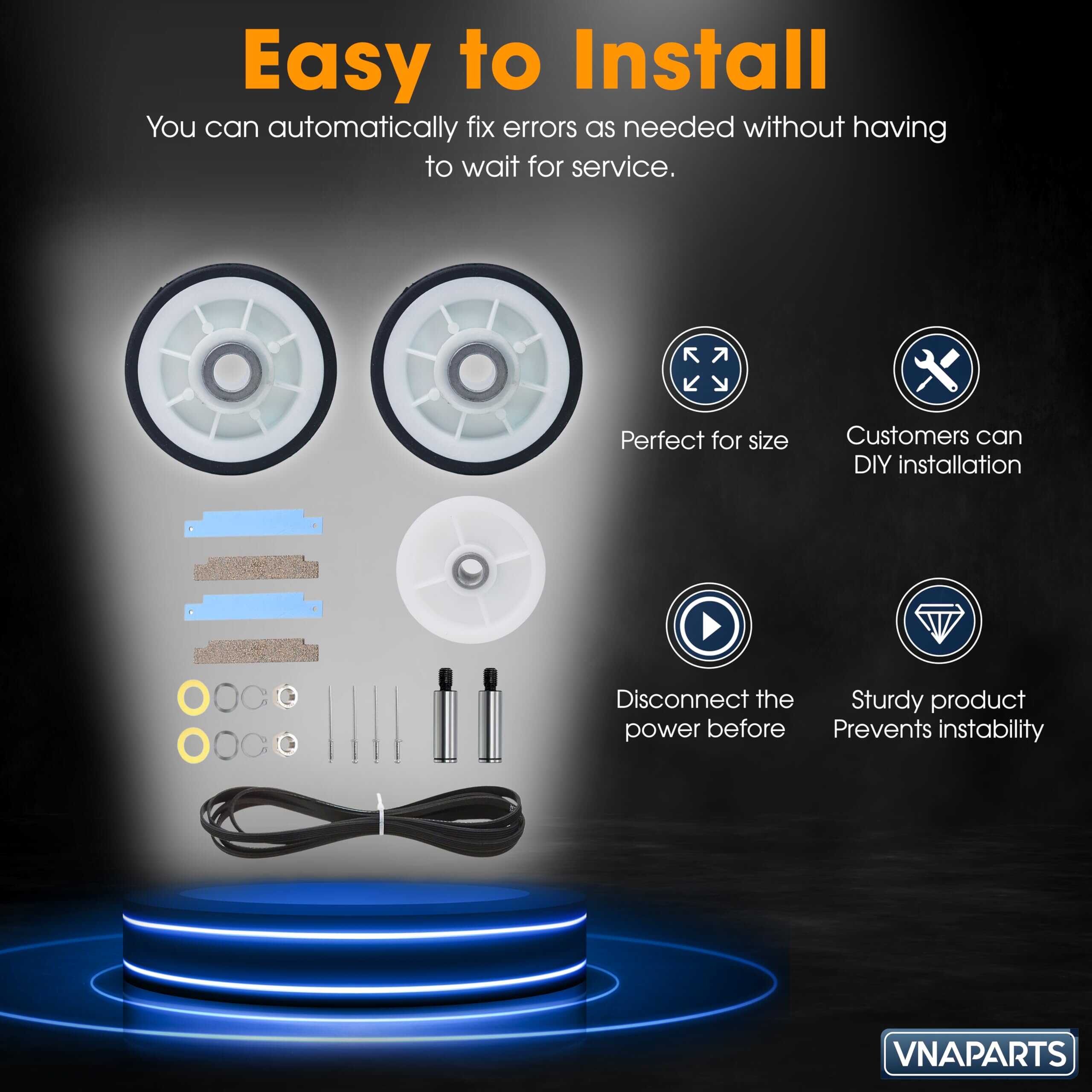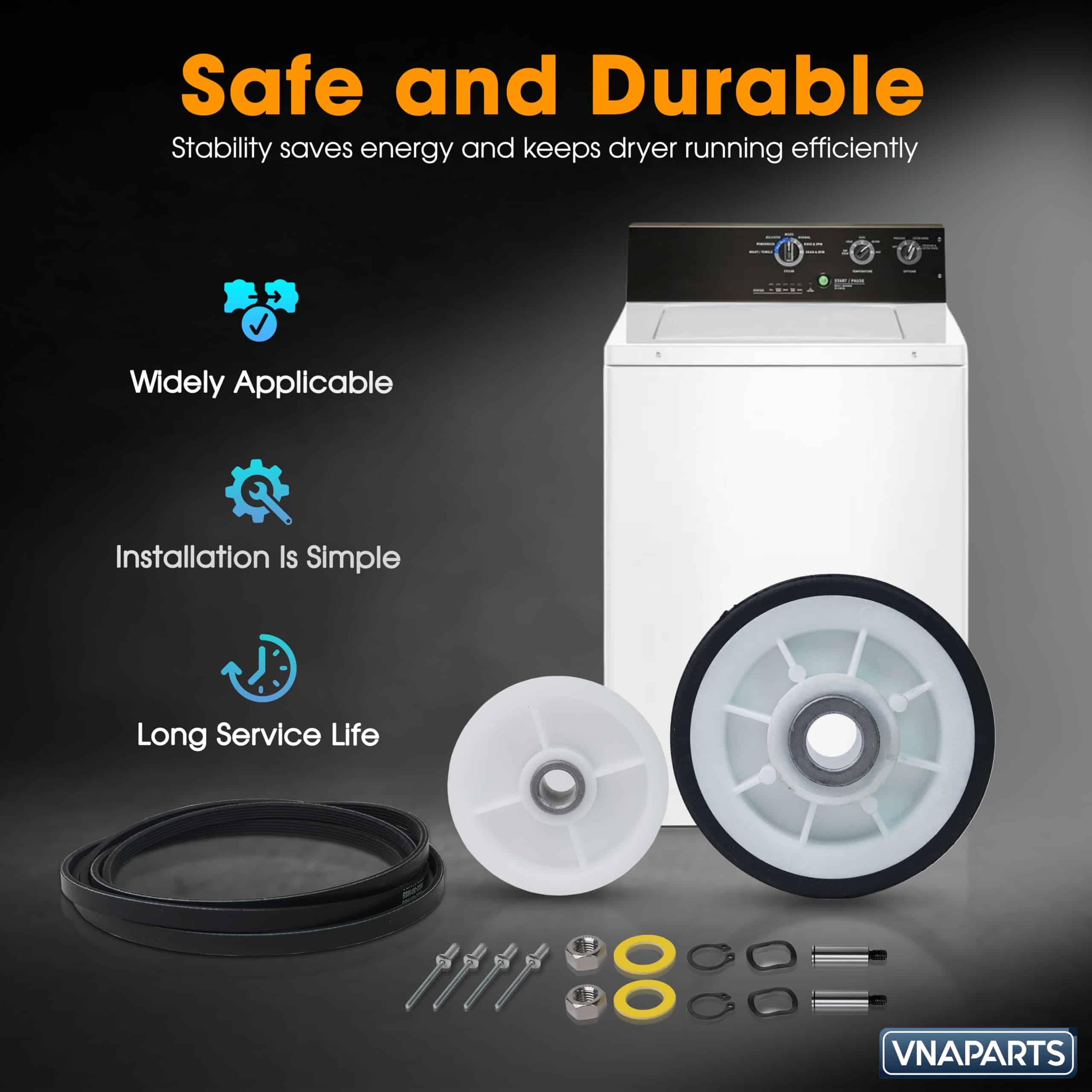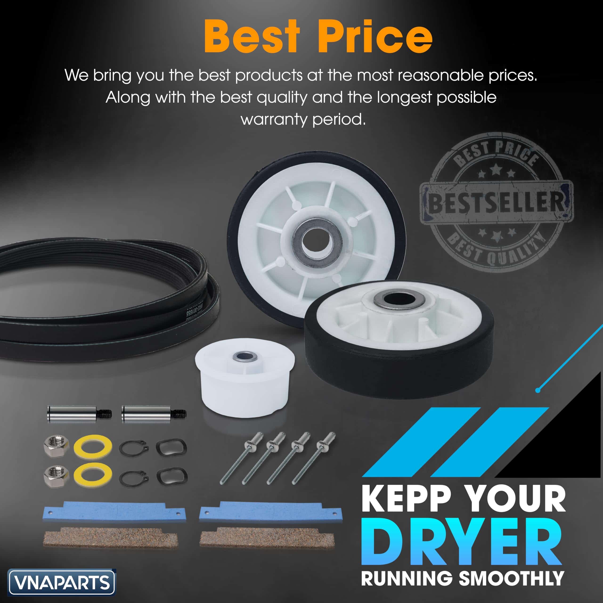 Revitaliza el rendimiento de tu secadora con nuestro Kit de Reparación Completo, diseñado para reemplazar partes de secadora Maytag Neptune, Jenn-Air, International y Crosley. Este kit todo en uno incluye todo lo que necesitas para restaurar tu secadora a condiciones óptimas, asegurando ciclos de secado eficientes y un funcionamiento más silencioso. Incluye rodillos de tambor, rodamientos, polea loca y correa para mantener la alineación y estabilidad adecuadas del tambor, reduciendo el desgaste y prolongando la vida útil de tu secadora.