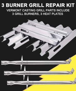 Renueva tu parrilla de gas Vermont Castings VM400 VM400XBP CF9030 VM600 con estas piezas de repuesto para parrillas. Refresca la apariencia y el rendimiento de tus piezas para parrilla, para mejorar la vida útil de tu parrilla Vermont Castings. El paquete consta de 3 tubos de quemador de parrilla de acero inoxidable, 3 escudos de calor de acero inoxidable.
