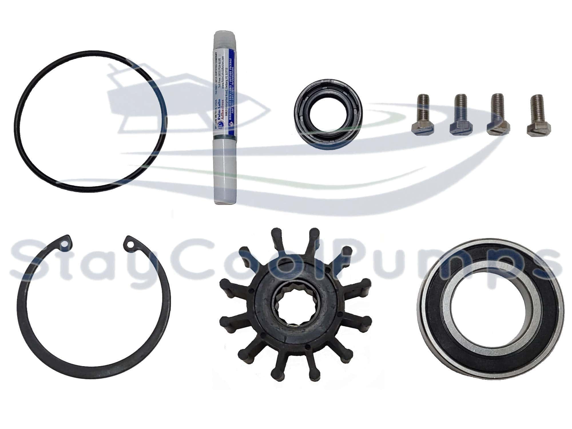 1. Kit nuevo de reconstrucción de bomba de agua de mar para las bombas 21214595, 21214596, 21214599, 21214601. Modelo Johnson 09-5000.