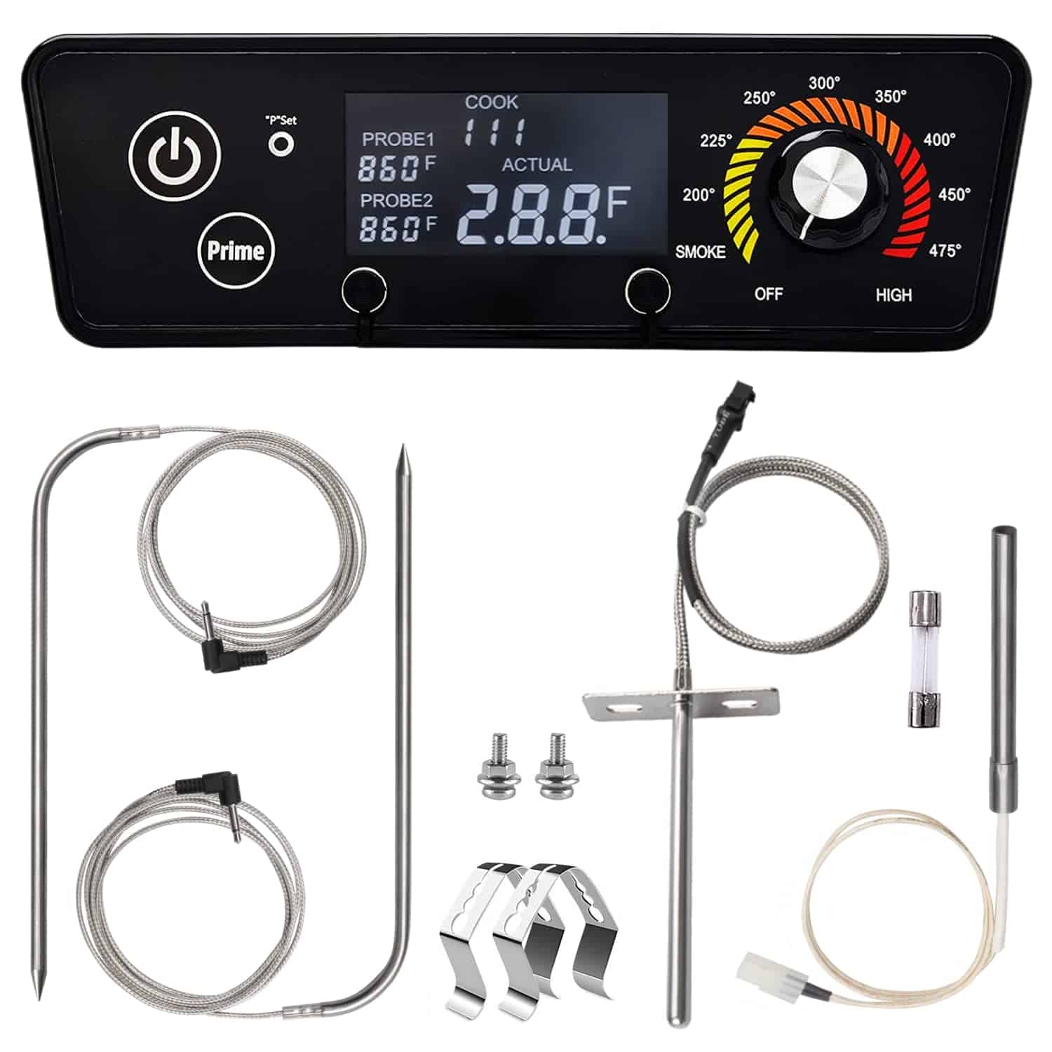 Kit de repuesto de placa de control digital con pantalla LCD compatible con Pit Boss Pellet Grill Smoker Austin XL, Tailgater, Classic. Incluye sonda de carne, sonda de sensor de temperatura y varilla de encendido. Este kit es un reemplazo perfecto para los modelos Pit Boss Austin XL 1000, Classic 700 y Tailgater 340. No es compatible con el Pit Boss Vertical Pellet Smoker/Refrigerador Grill y otras marcas de parrillas. Resuelve mejor la pérdida de control de temperatura que experimentaste con el controlador original. Con un rango de temperatura robusto de 200 a 475 F, te brinda la capacidad de afinar el control de temperatura en incrementos de 25F/50F. Mantiene la temperatura mejor que la original. La pantalla digital con LCD es brillante y fácil de leer. La varilla de encendido con fusible viene con un fusible para evitar que el interruptor se dispare. Esta varilla de encendido de reemplazo para parrillas de Pit Boss está rodeada por una funda de acero inoxidable que se calienta para la ignición rápida de pellets. Con 200W/120V, la varilla de encendido de cable de 21″ se conecta rápidamente en la base del recipiente de fuego para garantizar que tu parrilla siga funcionando eficazmente. La precisa sonda de lectura de nuestra parrilla de Pit Boss y el reemplazo del termostato RTG están hechos de acero inoxidable de grado alimenticio para monitorear la temperatura de la carne o de la parrilla. El diseño de la sonda de temperatura de la parrilla con ajuste de hebilla proporciona una medición precisa y rápida de la temperatura y te alerta sobre cambios de temperatura en segundos. Ofrecemos un servicio post-venta con satisfacción del cliente del 100%, con devolución de dinero. Si tienes alguna pregunta al recibir las piezas de repuesto para tu parrilla de pellet de Pit Boss, puedes contactarnos directamente y te daremos una respuesta satisfactoria en 24 horas y una solución satisfactoria.