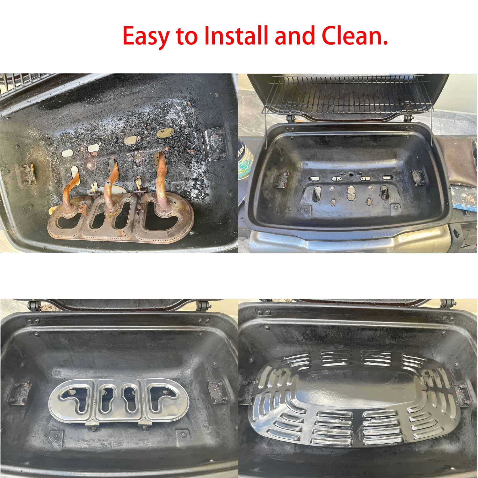 Kit de Repuesto Direct store Parts DG213 Quemador de Acero Inoxidable y Placa de Calor para Parrilla de Gas Uniflame GBC621C, GBC621CR-C, GBC730E-C, GBC730W, Kit de Reparación para Parrillas Uniflame. Repuesto para los modelos Uniflame: GBC621C, GBC621CR-C, GBC730E-C, GBC730W. Placa de calor / quemadores de parrilla para piezas de parrilla Uniflame, placa de calor de repuesto para GBC621C, repuesto de quemador para GBC621CR-C, repuestos para parrilla de gas para GBC730E-C, Tiendas de calor de acero de porcelana compatibles con GBC730W. El kit de piezas de Direct store Parts incluye 1 juego de quemadores de acero inoxidable, 1 placas de calor de acero de porcelana. Dimensiones del quemador: 17 1/2″ x 12 5/8″; Material del quemador: acero inoxidable; Dimensiones de la Tienda de Calor: 11 3/4 x 21 3/4″; Quemador de acero inoxidable de alta calidad, más duradero. Material del escudo térmico: acero de porcelana; Plato de calor de acero de esmalte porcelánico duradero, duradero, puede proteger los quemadores.