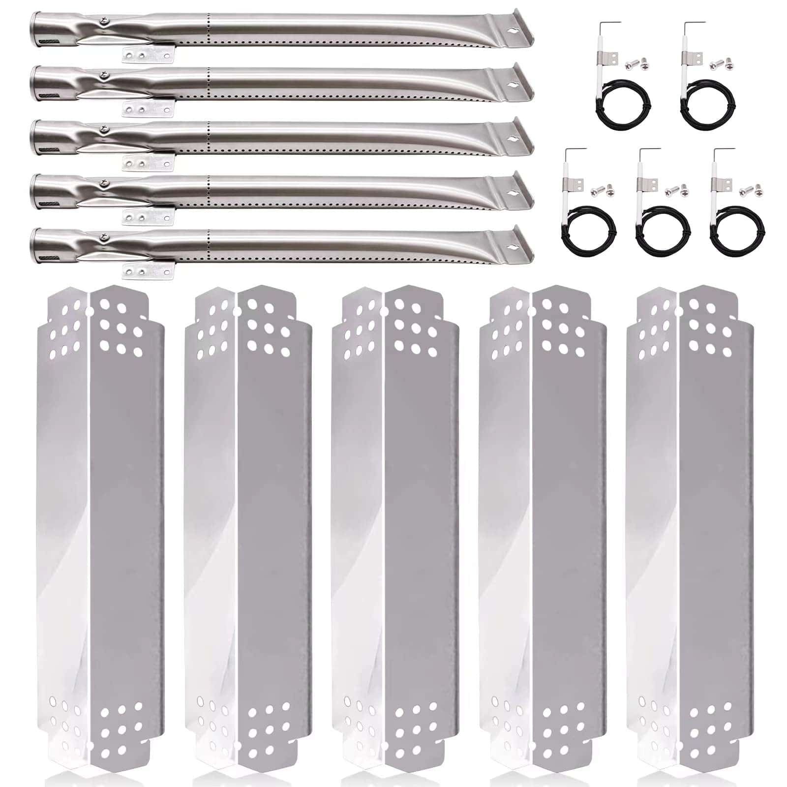 No necesitas buscar por partes correctas para tu parrilla Nexgrill de 5 quemadores 720-0888, 720-0888A, 720-0888N. El kit de repuesto para Nexgrill incluye 5 tubos de quemadores, 5 placas de calor, 5 encendedores para parrilla y 10 tornillos. Te ayudará a ahorrar tiempo y dinero. Compatible con modelos de parrilla Nexgrill 720-0888, 720-0888A, 720-0888N, 720-0830H, 720-0830A, 720-0783E, 720-0864M, 720-0898, 720-0830D, 720-0864, 720-0864R, 720-0882S, 720-0894F, 720-0896CA, 720-0925S, 720-0958A, 730-0898. También compatible con modelos de parrilla Members Mark 720-0830F, 720-0830G, 720-0882D. Compatible con parrillas BBQ Pro 122.47207610, 122.57901710, 720-0894R. Compatible con parrillas Ken/more 122.20148510, 122.33492410, 720-0830A. Compatible con parrillas Backyard Grill 720-0888M y BHG Grill 720-0783H. Tubo de quemador: 14 7/8″ x 1″, Material: Acero inoxidable. Placa de calor: 14 9/16″ x 4 3/16″, Material: Acero inoxidable. Cable del encendedor: aproximadamente 33.5″ L.