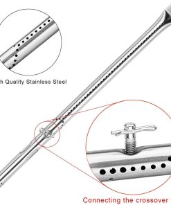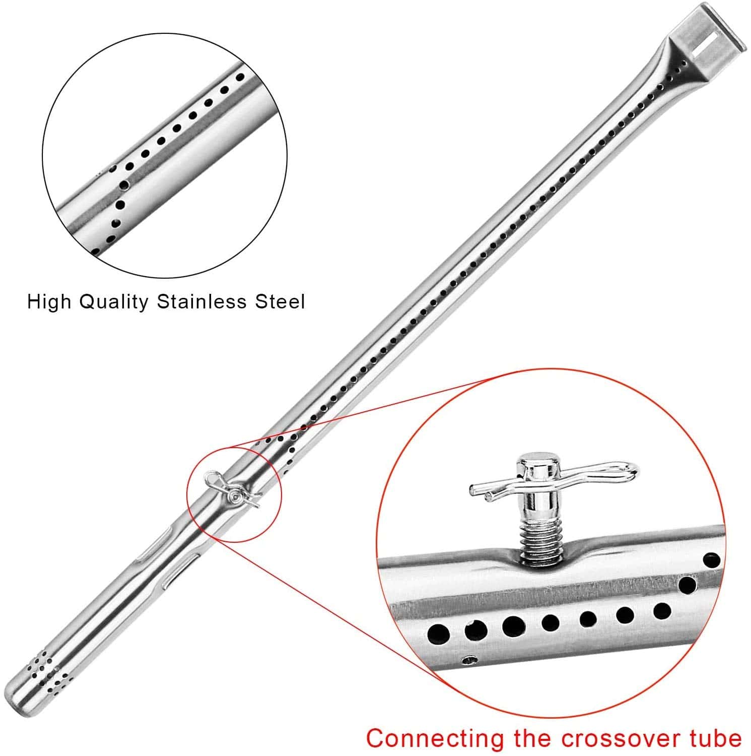 Dimensiones: Dimensiones del Quemador de Parrilla: 14 3/8′ x 3/5′; Dimensiones de la Placa de Calor: 15 1/2′ x 2′; Tubo de Cruzamiento Ajustable: Ajuste de 4.7 a 7.9 pulgadas