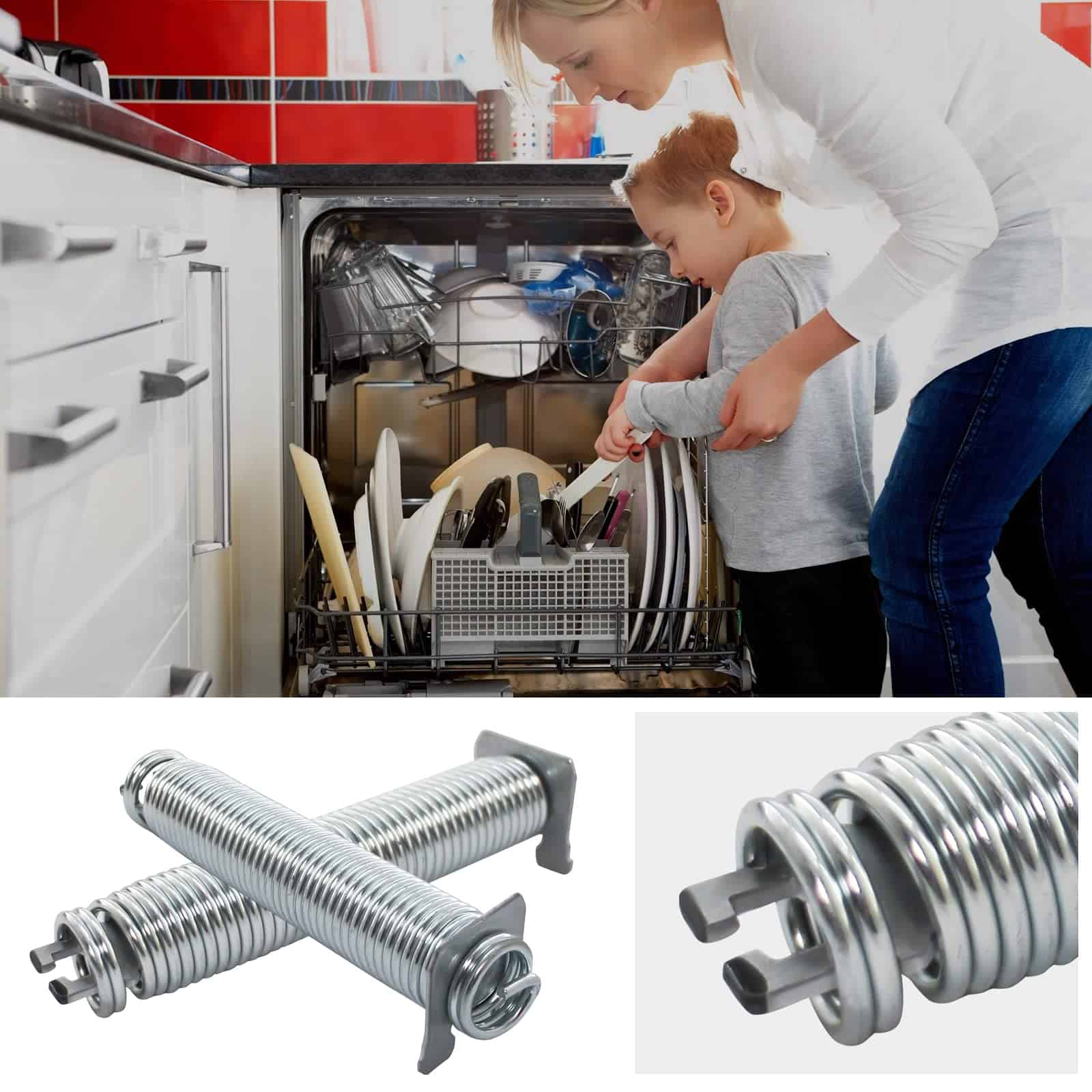 PROBLEMA A SOLUCIONAR: El Kit de Resorte de Puerta 00754866 aplica tensión a la puerta del lavavajillas a través de la bisagra de la puerta para evitar que la puerta caiga demasiado rápido al abrir el lavavajillas. Esta es una forma asequible de prolongar la vida de su máquina y mantener su lavavajillas funcionando de manera eficiente. Este kit consiste en 2 anillas de acero inoxidable y 2 cables, fabricados con una construcción duradera de acero inoxidable de alta calidad que resistirá el desgaste del tiempo. Totalmente compatible con lavavajillas Bosch, reemplaza SGV63E03UC/01 SGV63E03UC/73 y también se adapta a la mayoría de las marcas de refrigeradores de gama alta como Kenmore, Whirlpool, Kitchenaid, Crosley, Inglis, Roper, Estate, etc. No se necesitan herramientas, solo tome unos minutos para quitar los muelles y cables antiguos y reemplácelos por nuevos para restaurar la funcionalidad del lavavajillas, asegurándose de desenchufar el lavavajillas antes. Este es un reemplazo para un diseño específico del fabricante, pero es funcionalmente equivalente a la pieza original, que ha sido probada internamente para cumplir o superar el rendimiento del reemplazo de OEM.