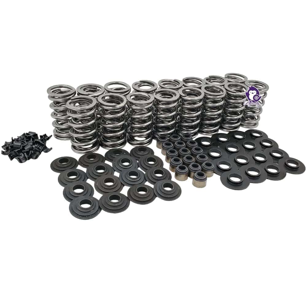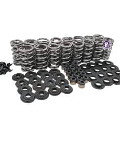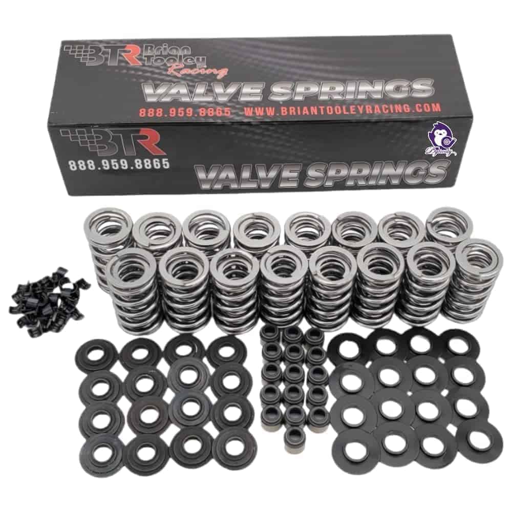 El kit de resortes platino de BTR sería inducido en el salón de la fama del mercado secundario de LS si existiera tal cosa. Ya sea que esté armando un vehículo diario con un árbol de levas suave, un motor N/A de 600 hp, o un luchador turboalimentado de 1000 hp, nuestro kit de resortes platino se asegurará de que sus válvulas estén justo donde su árbol de levas quiere que estén en todo momento. Están diseñados para ser utilizados con balancines de fábrica. Este es un kit de instalación directa para cabezas LS de 15 grados. También funcionará con cabezas LS7 cuando se utilice con una arandela de .045 (Números de parte SS015 + SS030). Este kit no es compatible con motores LS9. Las especificaciones de los resortes son las siguientes: 155 lbs @ 1.780″ 380 lbs @ 1.180″ 400 lbs @ 1.130″ Encuadernación de la bobina @ 1.070″