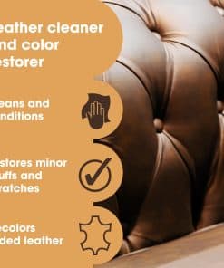 Este Kit de Restauración de Cuero de Furniture Clinic es ideal para restaurar muebles de cuero rayados y desgastados. Incluye un Limpiador de Cuero de 17 fl oz (500ml) y un Bálsamo de Recoloración de Cuero de 8.5 fl oz (250ml) para un tratamiento completo. El Limpiador de Cuero elimina la suciedad y el polvo profundamente incrustados en el cuero, dejándolo limpio y sin manchas. El Bálsamo de Recoloración de Cuero restaura el color de cueros absorbentes, reavivando muebles desvaídos y desgastados. Es fácil de usar y es apto para cueros de tonalidades oscuras y claras. Además, viene con una esponja y un paño para facilitar la aplicación. Este producto ha sido galardonado con el Sello de Buena Casa por el instituto Good Housekeeping, asegurando su efectividad y calidad. No dude en restaurar sus muebles de cuero con este completo kit de reparación.