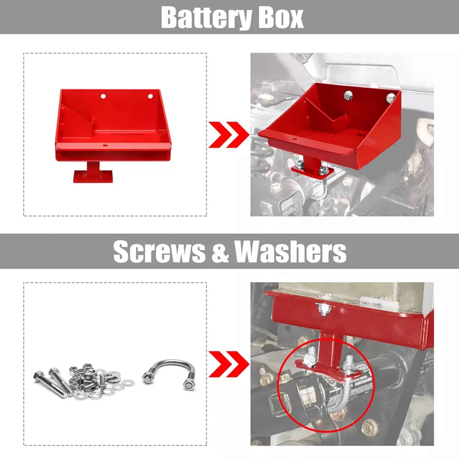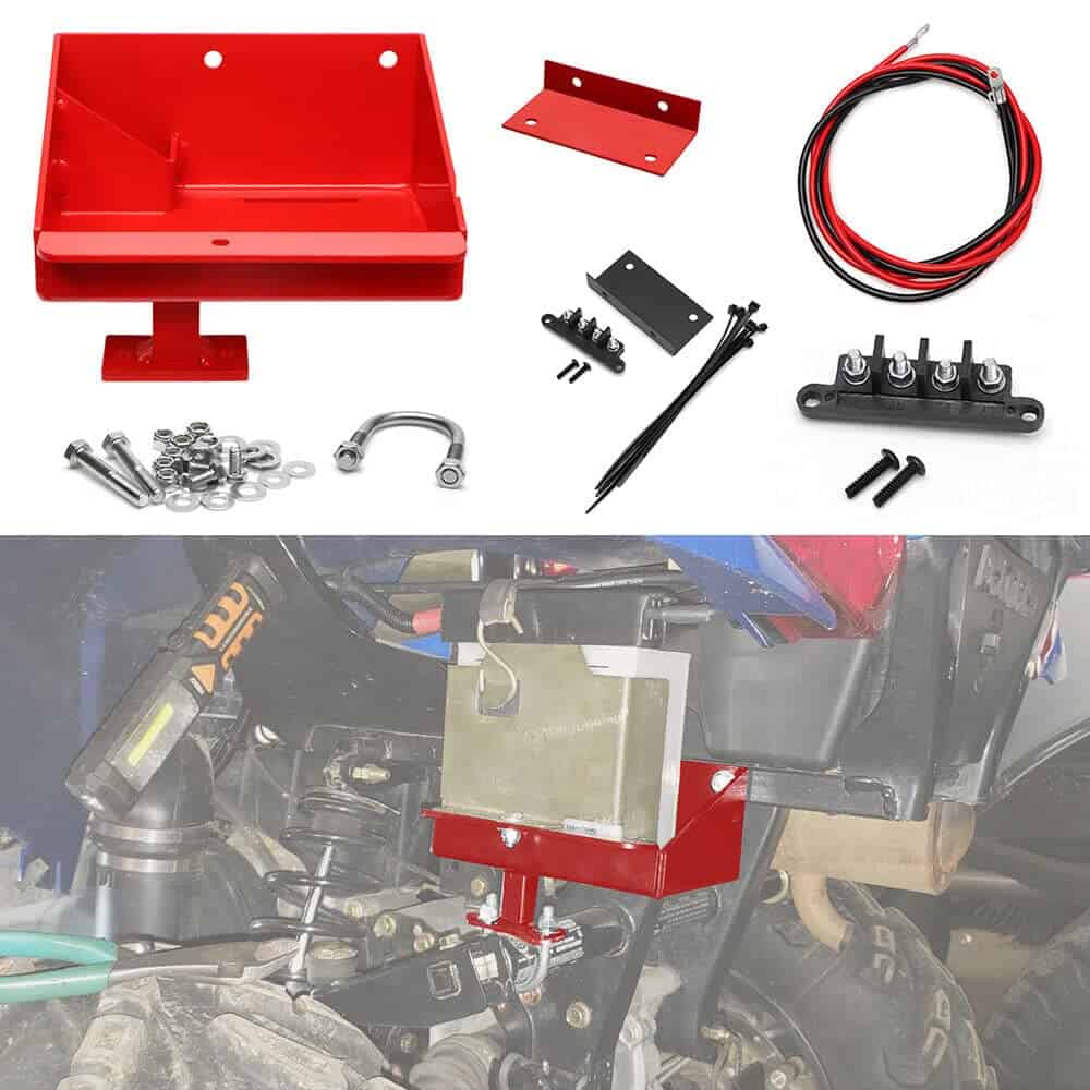1. Este kit de reubicación de batería es compatible con Polaris Sportsman 450 y 570 2014-2021. Puede reubicar la batería en la parte trasera del vehículo, lo que no solo facilita la carga de la batería de manera más directa sin tener que quitar el molesto asiento trasero, sino que también es más conveniente para mantener la batería de su vehículo!.
