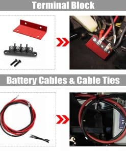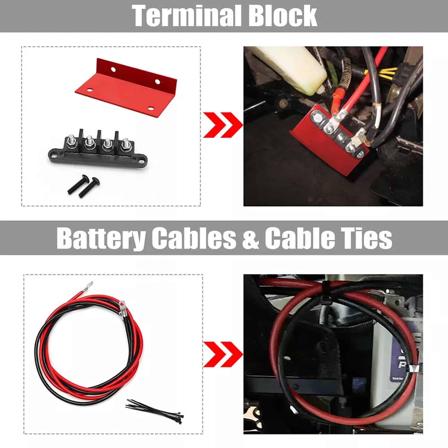4. Para llevar la energía hacia allá, incluimos un bloque de terminales agradable y nuevos cables de batería de calibre pesado para llevar la energía desde la ubicación original a la nueva ubicación de la batería. Se incluyen tornillo tipo U, bloque de terminales, tornillo hexagonal exterior, tuerca de bloqueo, junta tórica, Cable de cobre UR Listado, lo que lo hace tener una excelente conductividad eléctrica, estabilidad y resistencia a la corrosión. Le brinda una doble sensación de satisfacción.