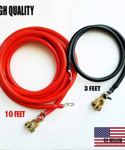 HECHO EN USA CABLE CALIBRE REAL 2 CADA KIT CONTIENE: 10 FT DE CABLE TERMINAL SUPERIOR POSITIVO A BORNERA DE COBRE ESTAÑADO DE 3/8″ COLOR ROJO 3 FT DE CABLE TERMINAL SUPERIOR NEGATIVO A BORNERA DE COBRE ESTAÑADO DE 3/8″. COLOR NEGRO