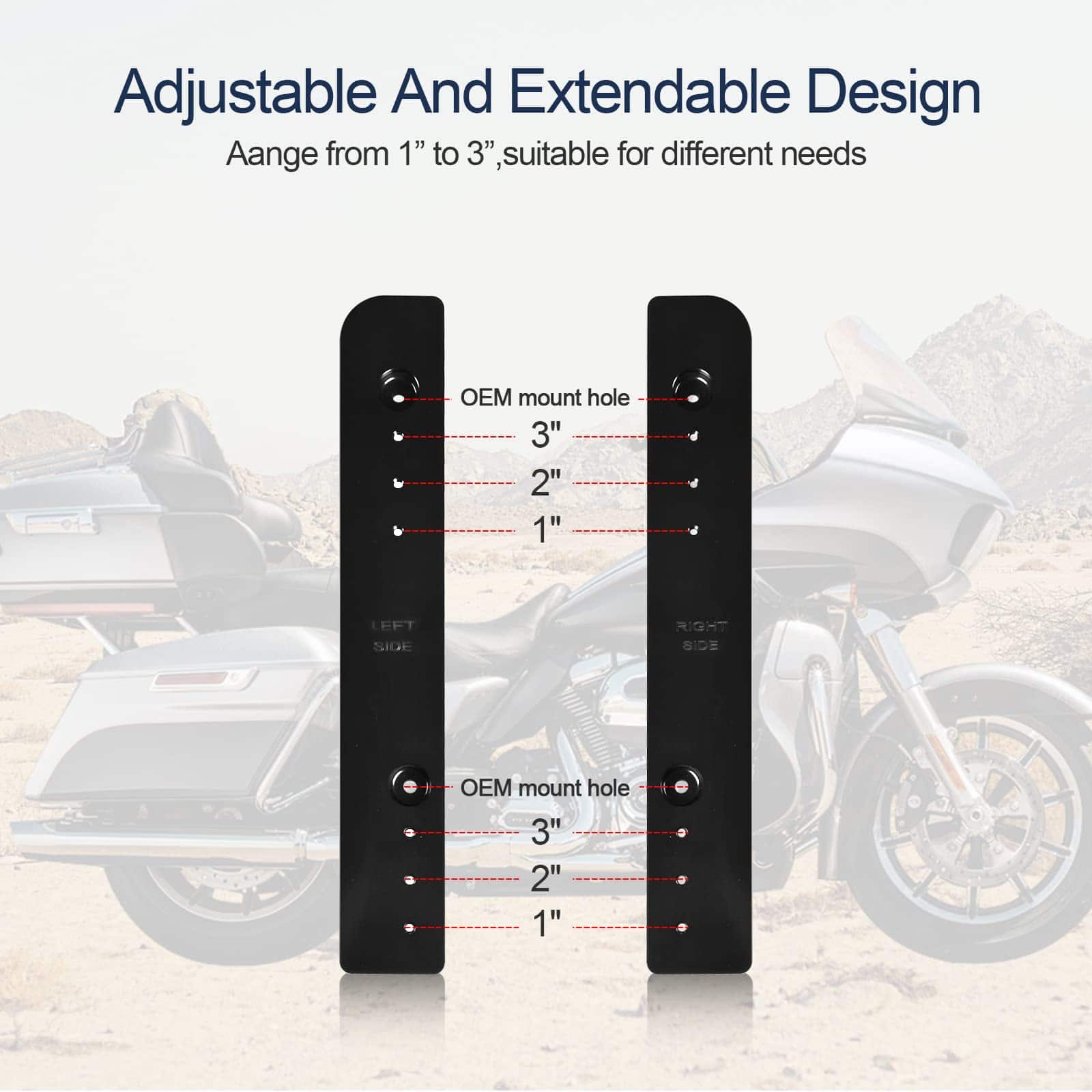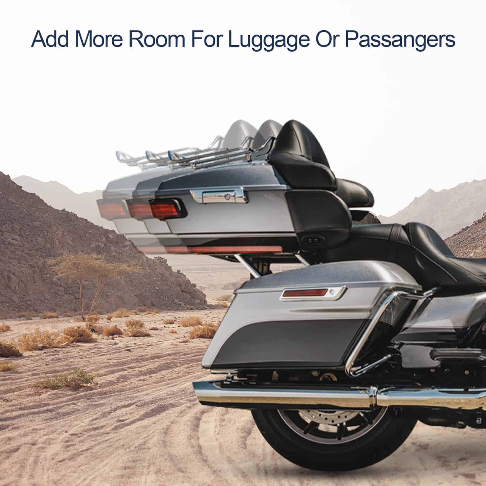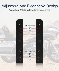 Este kit de reubicación de pack de gira de Hutexico es perfecto para los propietarios de Harley que desean crear más espacio en su motocicleta para un pasajero o más equipaje. Con su diseño ajustable y desmontable, puedes mover el pack de gira hacia atrás 1″, 2″ o 3″ posiciones de agujeros para adaptarse a tus necesidades. Hecho de aluminio de calidad y resistente a la intemperie, este kit está diseñado para durar y resistir todo tipo de condiciones en la carretera. La instalación es rápida y sencilla, sin necesidad de perforar o modificar tu motocicleta. Con este kit, podrás disfrutar de viajes más cómodos y seguros con tu Harley Touring Road King, Electra Glide, Street Glide, Road Glide o Trikes Glide. ¡Hazte con uno hoy y disfruta de la libertad de expandir tu espacio de carga en tu motocicleta Harley-Davidson!
