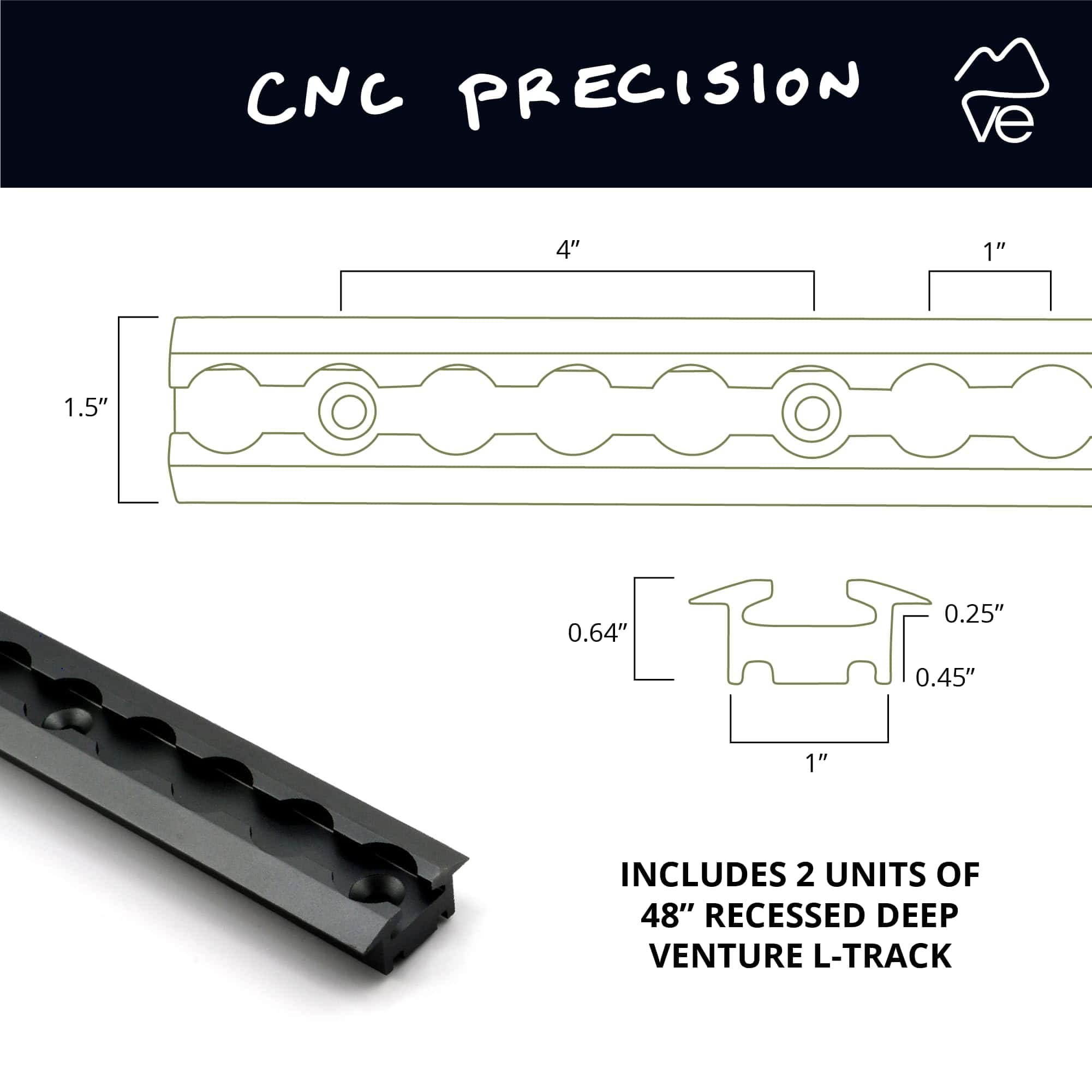 Kit de rieles de 48″ Venture Track T-6 de aluminio negro