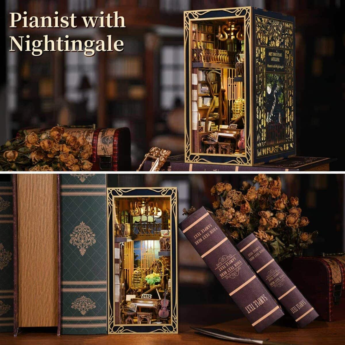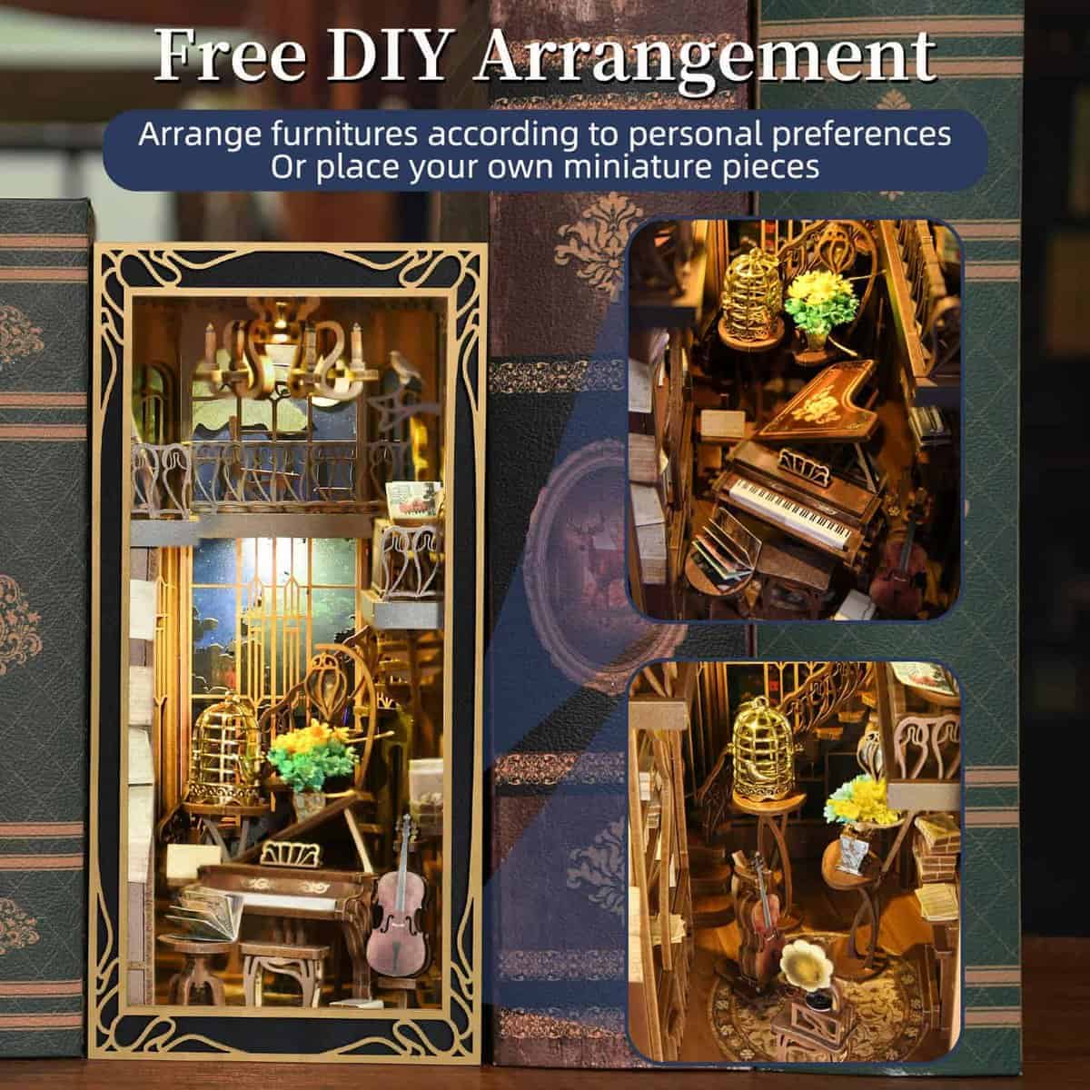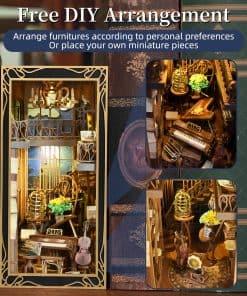 El Kit de Rincón de Libros CCCDF, inspirado en el evocador movimiento Art Nouveau, es una obra de arte que rinde homenaje a la fusión armoniosa entre el arte y la naturaleza. Este Kit de Casa de Muñecas en Miniatura es una combinación perfecta de diversión y relajación, que le permitirá pasar horas ensamblando esta encantadora estantería de libros. Construido con madera importada y duradera, este rompecabezas en 3D le asegura años de disfrute. Las luces LED cálidas y la cubierta antipolvo incluida añaden un toque acogedor a su miniatura privada, creando un ambiente encantador. Ideal para regalar a entusiastas del arte, este kit de rincón de libros despertará la creatividad y la imaginación de adultos y adolescentes por igual. Con un soporte dedicado para resolver cualquier pregunta de ensamblaje, puede estar seguro de que su experiencia será sin complicaciones. Requiere 2 pilas AAA (no incluidas).
