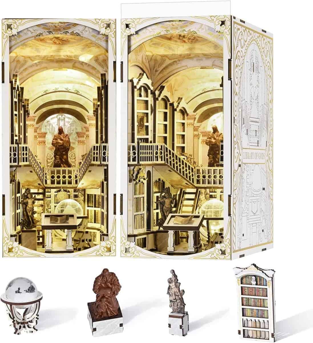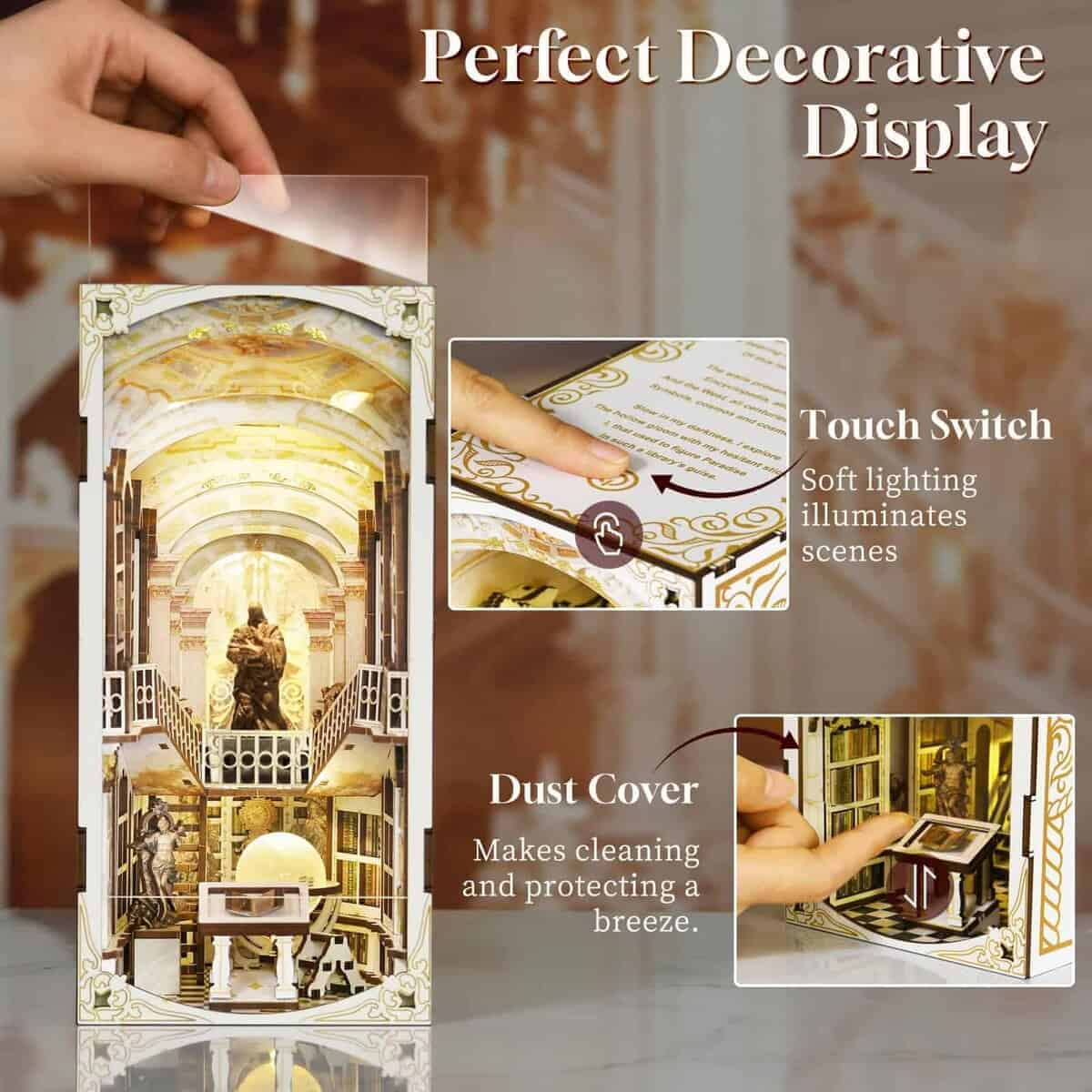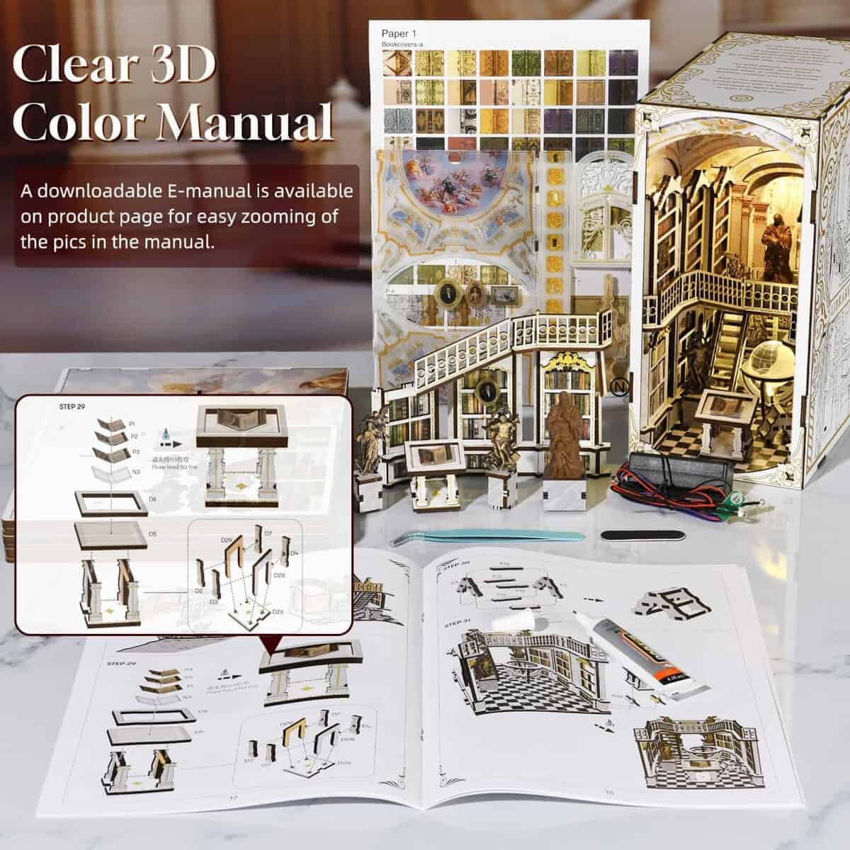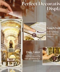 Embárcate en un viaje hacia lo etéreo con nuestro Kit de Rincon de Libros en Miniatura, tematizado como la «Librería de los Dioses» un refugio divino inspirado en la renombrada biblioteca de la Abadía de Admont. La disposición meticulosa rinde homenaje a las artes divinas, creando un espacio donde lo sagrado y lo académico se fusionan. El kit de rincon de libros diy combina diversión y relajación. Durante las 6-10 horas de montaje disfrutable, puedes mejorar tu destreza y paciencia con estos rincones de libros de casa de muñecas. Además, el E-manual descargable en esta página se puede ampliar para ayudar a identificar la orientación de las piezas con mayor claridad. Estos rompecabezas de madera 3D de estantes de libros están meticulosamente fabricados utilizando madera importada de calidad excepcional. El grosor y la durabilidad de la madera garantizan un disfrute duradero. Puedes estar tranquilo, los materiales del kit de rincon de libros son completamente seguros y altamente resistentes a la flexión o rotura. Las luces cálidas agregan un toque de confort a tu pequeña biblioteca privada, permitiéndote sumergirte en el mundo de los libros. Lo más importante es que se incluye la cubierta contra el polvo, lo que hace que limpiar y proteger el inserto de estante de libros de la casa de muñecas sea muy fácil. ¿Buscas un regalo único y considerado para el amante del arte? Nuestros kits de rincon de libros para adultos y adolescentes son la elección perfecta. Ya sean miniaturistas experimentados o novatos, este kit seguramente inspirará su creatividad y despertará su imaginación. El Kit de Decoración de Rincon de Libros se ha revisado cuidadosamente al 100% antes de la entrega para asegurarse de que los accesorios estén completos y no falten. No dudes en contactarnos si tienes alguna pregunta durante el montaje, resolveremos cualquier problema lo antes posible. Nota: Debes preparar 2 baterías (tipo AAA) por ti mismo.