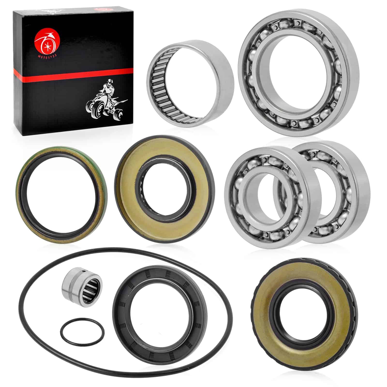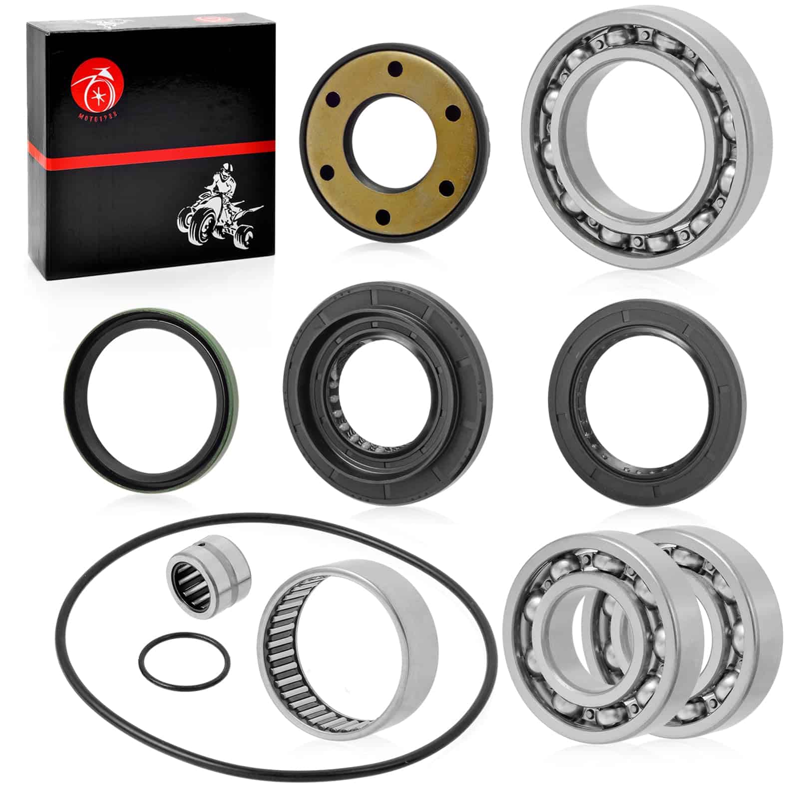 Incluye 5x Rodamiento, 4x Sello, 2x Anillo de Sello. Números de Pieza del Fabricante: 27405-05GF0, 27405-05GD0, 27405-05GC0, 27405-05GB0, 27406-05GB0, 27406-05GA0, 27406-05GC0, 27406-05GG0, 27406-05GF0, 27406-05GE0. Este kit es compatible con varios modelos de Suzuki Ozark 250 LTF250 2×4 y Quadsport Z250 LTZ250. Consulte los números OEM y las imágenes para asegurarse de que sea compatible con su modelo antes de realizar la compra.