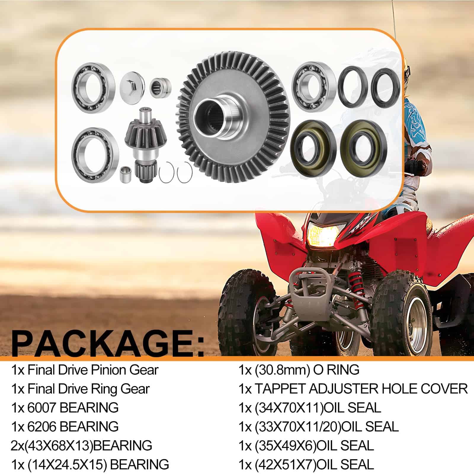 ELEVATE FOR HONDA ADVENTURE: Compatible con modelos Honda, nuestro kit de rodamiento de diferencial trasero y sello y engranaje de piñón de transmisión final para Honda es una actualización imprescindible para los entusiastas. Nuestro kit garantiza un rendimiento y fiabilidad óptimos para tu paseo.