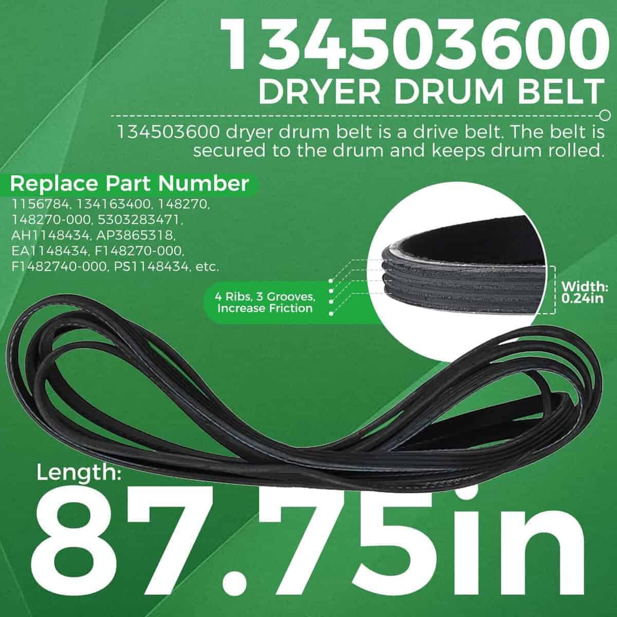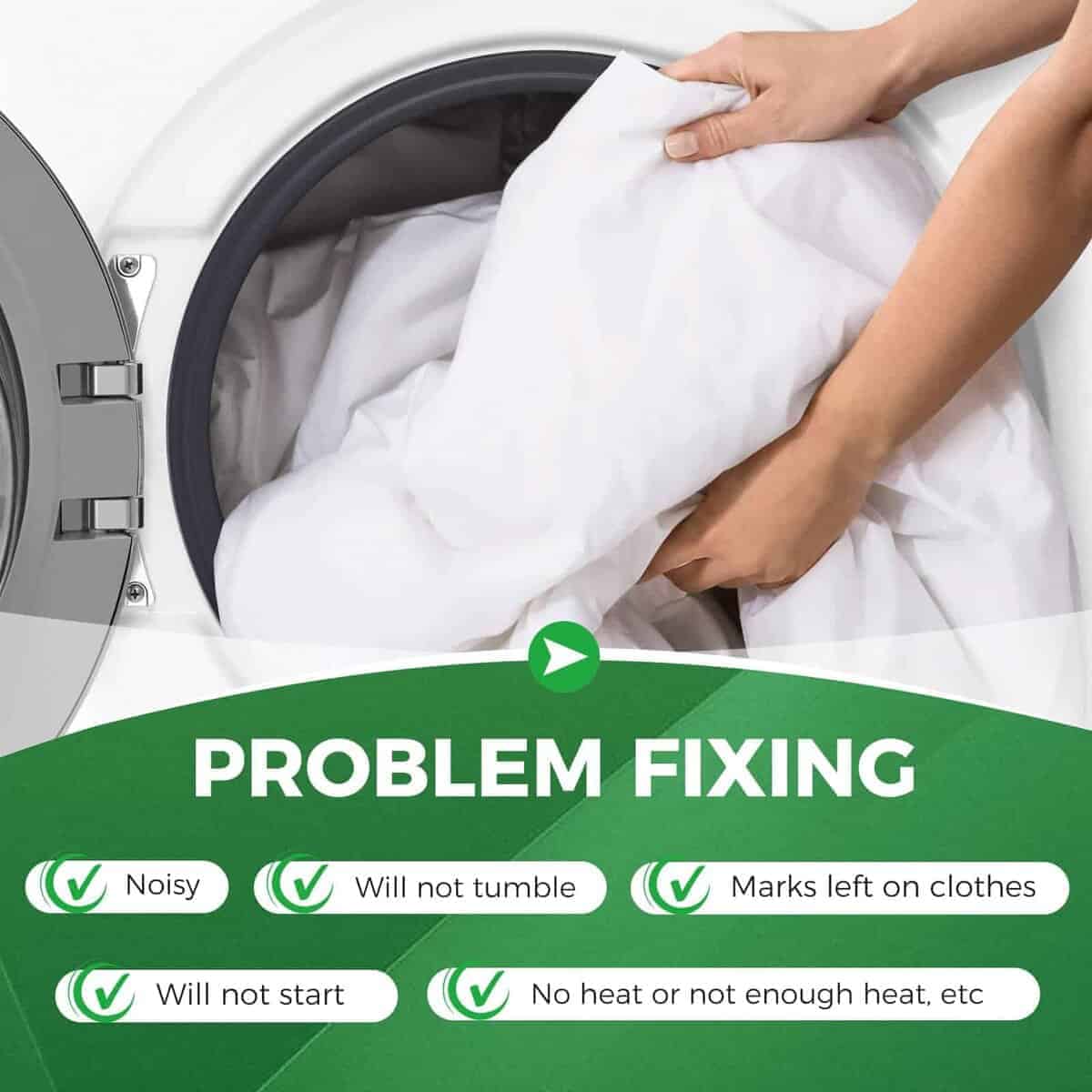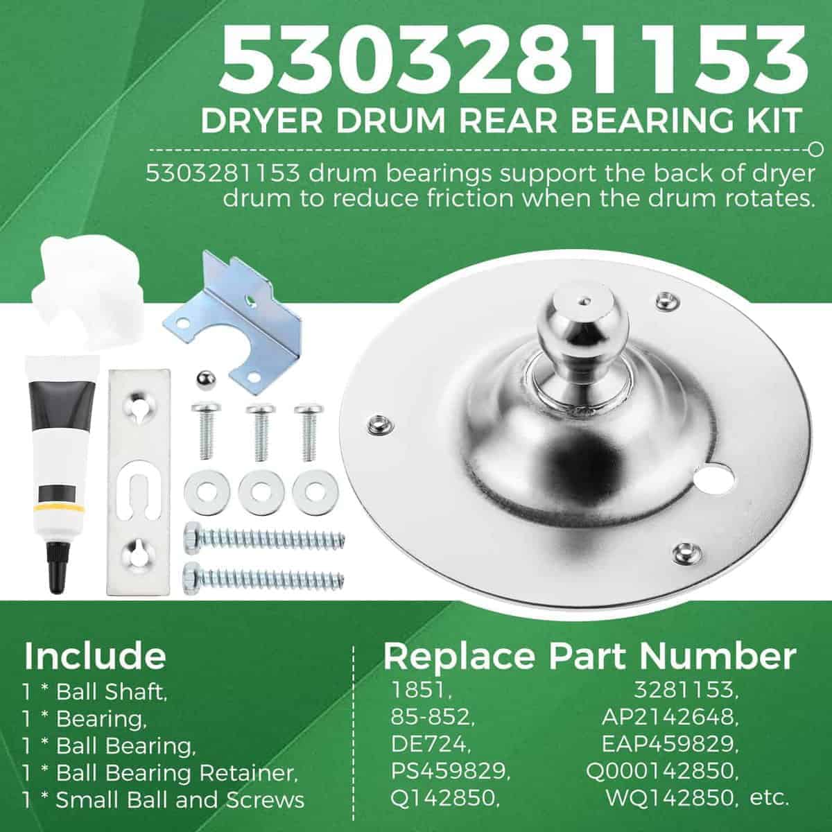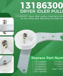 1. : Kit de rodamiento trasero del tambor de la secadora 5303281153 (1 eje de bola, 1 rodamiento, 1 rodamiento de bolas, 1 retenedor de bolas, 1 tornillos de montaje), Correa de transmisión del tambor de la secadora 134503600 (87.75″ L x 0.24″ W), Ensamble de la polea loca de la secadora 131863007. 2. : Kit de rodamiento trasero del tambor de la secadora 5303281153 reemplaza: DE724, WE25X10001, 131777700, 5304459240, Q142850, 1851, 3281153, Q000142850, WQ142850, AP2142648, PS459829, 142850, etc. Correa de transmisión del tambor de la secadora 134503600 reemplaza: AP3865318, 5303283471, AH1148434, PS959964,1156784, 134163400, 5303283471, AP3865318, F148270-000, F1482740-000, etc. Ensamble de la polea loca de la secadora 131863007 reemplaza: 131434600, 131580400, 131826900, 131863000, 131863004, 1191132, AP3886900, EAP1156706, PS1156706. 3. : Kit de rodamiento trasero del tambor de la secadora 5303281153 y correa de transmisión del tambor de la secadora 134503600 y ensamble de la polea loca de la secadora 131863007 es compatible con la mayoría de las marcas principales: Frigidaire, Gibson, Kenmore, Tappan, Kelvinator, Westinghouse, Crosley, Electrolux, etc. Modelos compatibles: MDG216RED1, MDG336MBD1, LEQ7000EG0, LEQ7000ES1, LFD301EW1, GCER1042FC0, GLEQ2152ES0, FGQ1452HS1, FGQ332ES0, FGQ332ES1, FGQ332ES2, CRER5700AS1, CRER7900AS0, etc. No se incluyen todos los modelos. Si no está seguro de si este kit es adecuado para su modelo, puede comunicarse con nosotros. 4. : El rodillo trasero del rodamiento de la secadora 5303281153 es un rodamiento de bola y casquillo. El rodillo trasero de la secadora evitará gritos agudos. La correa de transmisión del tambor de la secadora 134503600 es una correa de transmisión. La correa está asegurada al tambor y mantiene el tambor enrollado. La polea loca de la secadora 131863007 mantiene la tensión en la correa de transmisión, permitiendo que la correa gire. 5. : El kit 5303281153 y 134503600 y 131863007 está hecho de material de calidad, probado por el fabricante para cumplir con el estándar OEM. Estas piezas pueden solucionar los siguientes síntomas: Ruidoso; No girará; Marcas en la ropa; No se iniciará; Sin calor o no suficiente calor, etc.