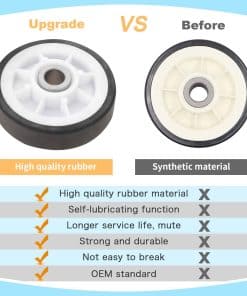 Kit de Reparación para Secadora Maytag incluye: 2 juegos de Kit de Rodillos de Soporte de Tambor de Secadora 12001541 2pcs Kit de Rodamiento de Tambor/Kit de Deslizamiento de Tambor 306508 1pc de Polea Loca de Secadora WP6-3700340 Los Rodillos de Soporte de Tambor 12001541 Mantienen el tambor en su lugar mientras el tambor gira en las ruedas de soporte. Cada kit consta de Rodillo de Soporte de Tambor, Eje, Arandela de Resorte, Arandela de Fibra, «C» Clip y Tuerca. Reemplazar Parte: 12001541VP, W10116741, 3-3373, 303373, 303373K, Y303373, DE693, K35-248, 400518, etc. Kit de Deslizamiento 306508 Ayuda al tambor a girar suavemente y en silencio. Cada kit incluye deslizamiento, almohadilla de corcho/fieltro y 2 remaches. Reemplazo: 306508VP, 3-6508, 312941, 3-12941, 1309, etc. Polea Loca de Secadora WP6-3700340 Mantiene la tensión correcta en la correa de transmisión para hacer girar el tambor. Reemplazar Parte: 33001783, 6-3700340, WP6-3700340VP, 1472812, etc. Bien diseñado para Maytag. Las Marcas Compatibles Incluyen: Maytag, Kenmore, Crosley, Amana, Jenn Air, etc.