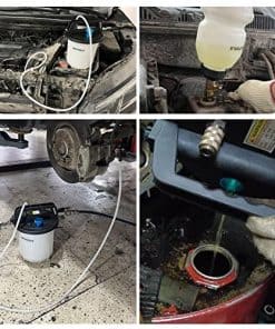 Comparado con otros productos similares, nuestro kit de Sangrado de Frenos Neumático de Mayor Capacidad puede proporcionar automáticamente y de forma continua más succión para permitir un sangrado más rápido de las líneas de freno y embrague. Operación rápida, limpia y eficiente sin tapones de depósito de freno especializados. Extrae fluido desde el tornillo de purga, permitiendo tanto el sangrado como la reposición completa del fluido en el sistema. Incluye botella de rellenado de fluido de frenos de 1L, tanque de sangrado de frenos neumático de 3L con manguera flexible de 63 pulgadas y adaptador universal para tornillo de purga. Diseñado para drenar la mayoría de los sistemas de frenos estándar y ABS. Presión de entrada de aire: 4,8-11,6 bar (70-170 psi). Consumo de aire promedio 4.5 CFM. Viene con 16 piezas de adaptadores de tornillo de purga para una variedad de tornillos de purga.