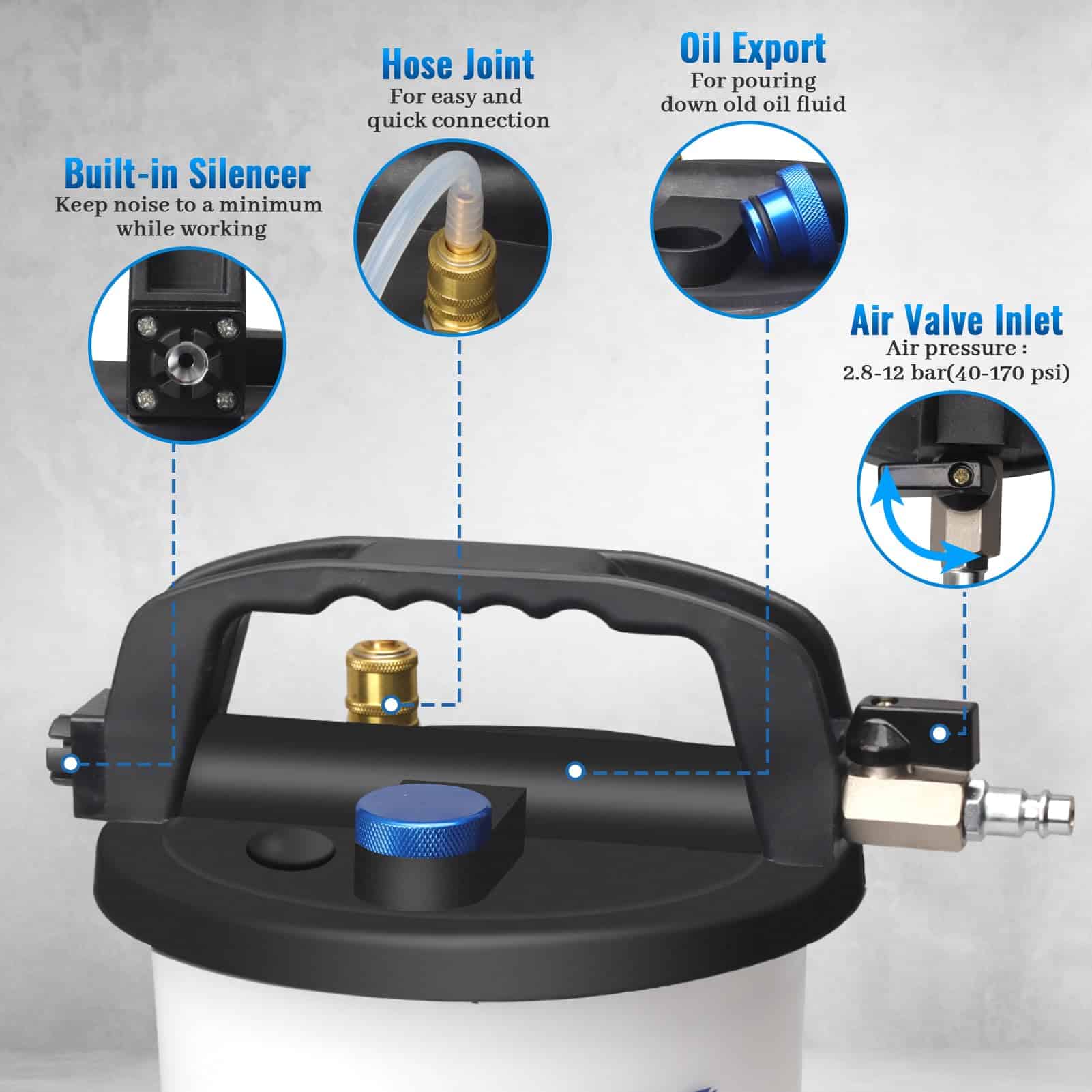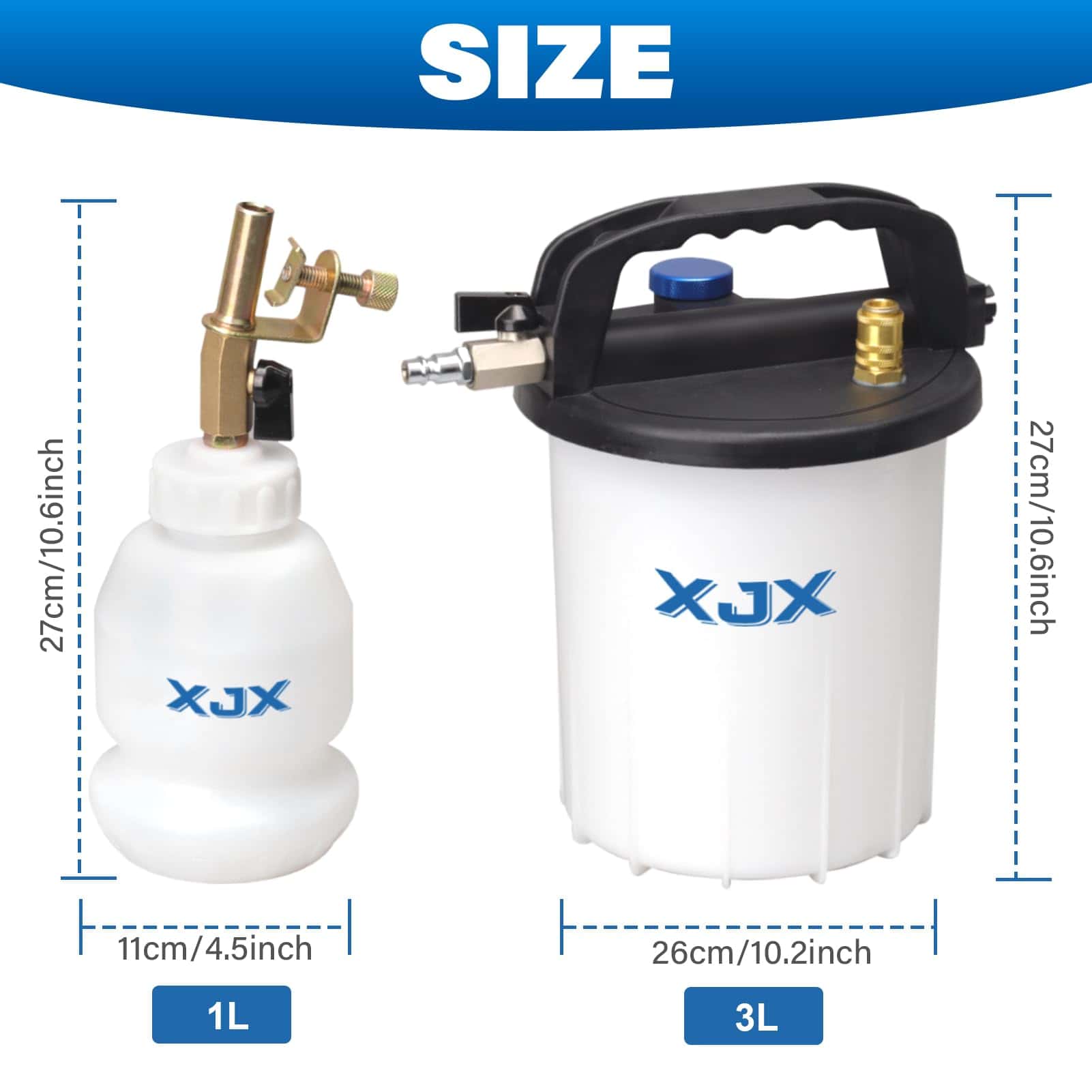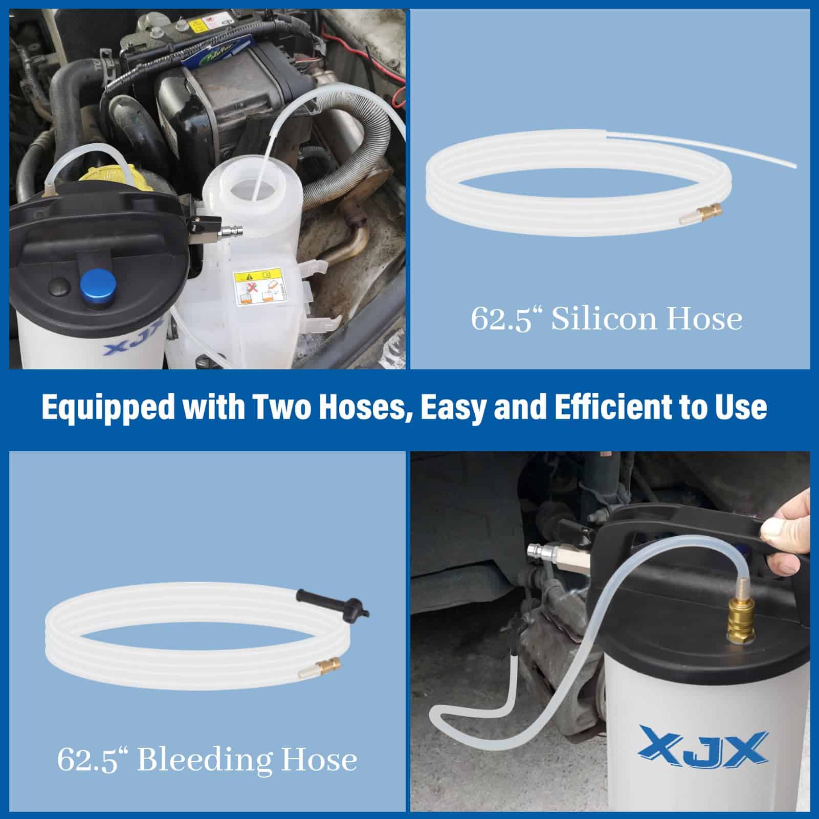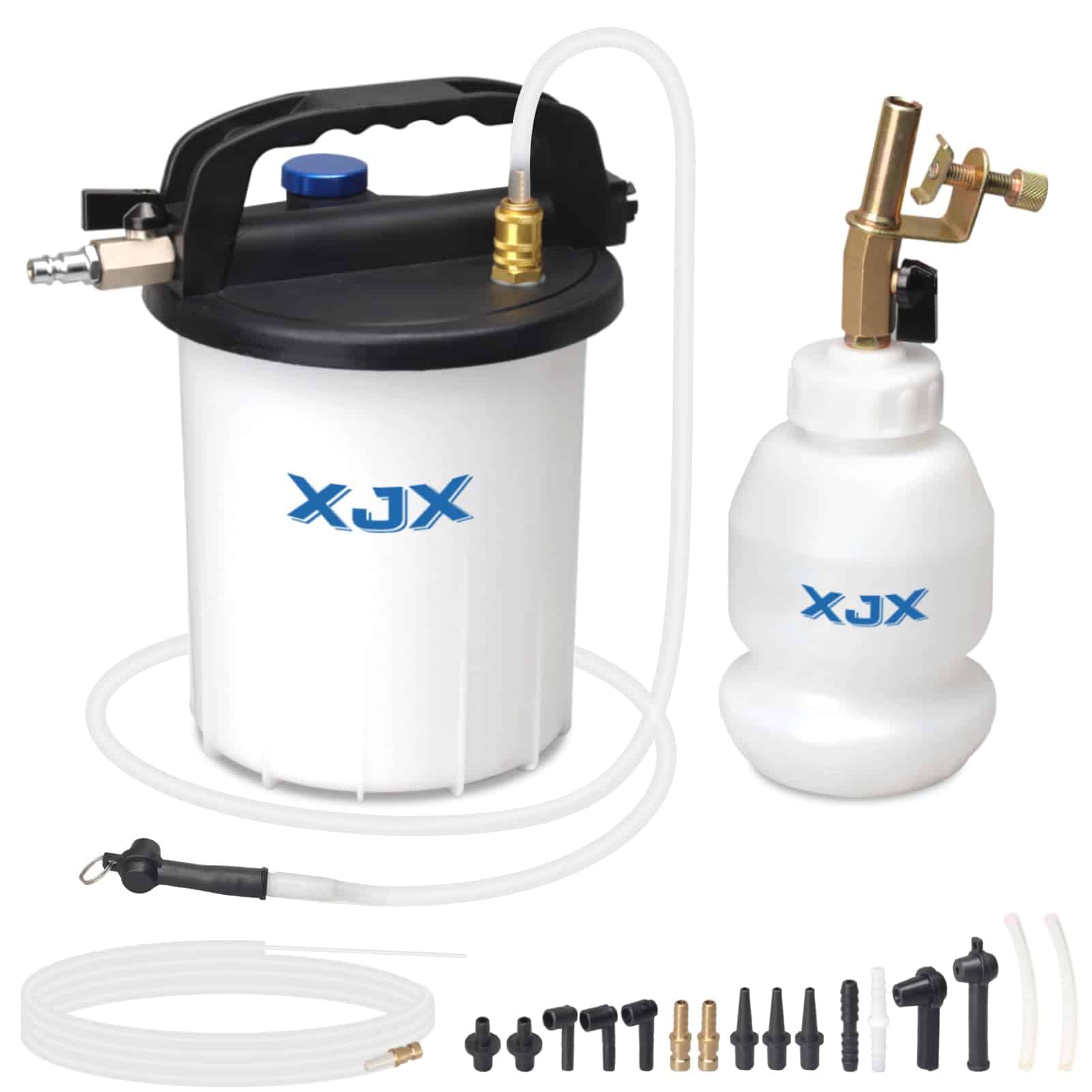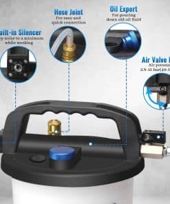 Vacíe y purgue eficientemente el sistema de frenos de su vehículo con este Kit de Sangrado de Frenos al Vacío XJX 3L. Con un rango de presión de aire de 2.8-12 Bar (40-170 PSI), esta herramienta garantiza una succión poderosa y continua para una extracción rápida del líquido de frenos. La capacidad de 3L y la botella de 1L para rellenado hacen que sea fácil purgar y reemplazar el líquido de frenos por usted mismo, sin la necesidad de ayuda adicional. Además, con 16 accesorios incluidos, una manguera de silicona de 62.5 y una manguera de purgado de 62.5, este kit es compatible con la mayoría de los vehículos, desde camiones hasta motocicletas y ATV. El diseño resistente y a prueba de fugas garantiza un uso duradero sin derrames ni daños. Con una bomba de vacío, reservorio de líquido, mangueras y adaptadores, este kit ofrece todo lo necesario para un mantenimiento de frenos profesional. ¡Logre resultados de nivel profesional fácilmente desde la comodidad de su hogar o garaje con este Kit de Sangrado de Frenos al Vacío de XJX!