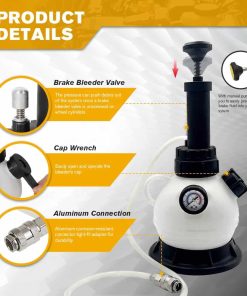 El Kit de Sangrado de Frenos Manual de Wenzhon 2L es la herramienta perfecta para realizar el mantenimiento de tus frenos de forma fácil y efectiva. Confeccionado con material de alta calidad PE, este kit garantiza durabilidad y resistencia a la corrosión. La operación puramente manual hace que sea fácil de usar, sin necesidad de fuente de energía externa. Con un depósito de 2L y una botella de 1L, este kit puede ser utilizado en entornos difíciles para cambiar el líquido de frenos de forma segura y eficiente. Evita la entrada de aire en tus frenos con la bomba de sangrado incluida, que te permite cambiar el líquido de frenos sin la necesidad de vigilar constantemente el nivel del fluido. La instalación y uso son sencillos gracias a la llave de anillo y el manómetro incluidos. El sistema de vacío garantiza una operación limpia y sin desorden, reduciendo derrames y contaminación. Tanto si eres un profesional como un entusiasta del bricolaje, este kit de sangrado de frenos simplificará tu trabajo y mantendrá tu área de trabajo ordenada y limpia.
