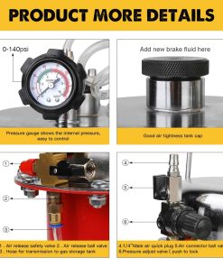 3. Control Preciso de Presión: Con nuestra herramienta sangrador de frenos a presión, puede mantener una presión constante mientras sangra sus frenos, evitando que entre aire en el sistema.