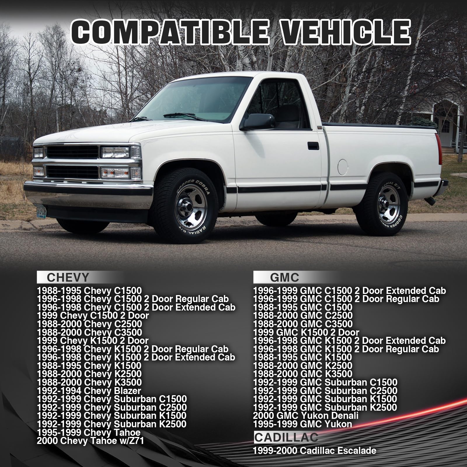 Compatible con Chevy 1988-95 Chevy C1500 1996-98 Chevy C1500 Cabina Regular de 2 puertas 1996-98 Chevy C1500 Cabina Extendida 1999 Chevy C1500 2 puertas 1988-00 Chevy C2500 1988-00 Chevy C3500 1999 Chevy K1500 2 puertas 1996-98 Chevy K1500 2 puertas Cabina Regular de 2 puertas 1996-98 Chevy K1500 2 puertas Cabina Extendida 1988-95 Chevy K1500 1988-00 Chevy K2500 1988-00 Chevy K3500 1992-94 Chevy Blazer 1992-99 Chevy Suburban C1500 1992-99 Chevy Suburban C2500 1992-99 Chevy Suburban K1500 1992-99 Chevy Suburban K2500 1995-99 Chevy Tahoe 2000 Chevy Tahoe con Z71 Para GMC 1996-99 GMC C1500 2 puertas Cabina Extendida 1996-99 GMC C1500 2 puertas Cabina Regular 1988-95 GMC C1500 1988-00 GMC C2500 1988-00 GMC C3500 1999 GMC K1500 2 puertas 1996-98 GMC K1500 2 puertas Cabina Extendida 1996-98 GMC K1500 2 puertas Cabina Regular 1988-95 GMC K1500 1988-00 GMC K2500 1988-00 GMC K3500 1992-99 GMC Suburban C1500 1992-99 GMC Suburban C2500 1992-99 GMC Suburban K1500 1992-99 GMC Suburban K2500 2000 GMC Yukon Denali 1995-99 GMC Yukon Para Cadillac 1999-00 Cadillac Escalade Nota: Verifique el número de parte antes de comprar para asegurarse de que se ajuste a su automóvil Nota: Por favor, verifique primero si la puerta delantera está intacta, si está doblada o deformada, el sello de la puerta no sellará completamente la puerta y se recomienda usar cinta de espuma para optimizarlo aún más. Nota: Preste atención a la dirección de instalación correcta al instalar Nota: Como el sello de la puerta está diseñado para ser más grueso para un mejor sellad…onnenos en 24 horas. (Excepto domingos y días festivos)