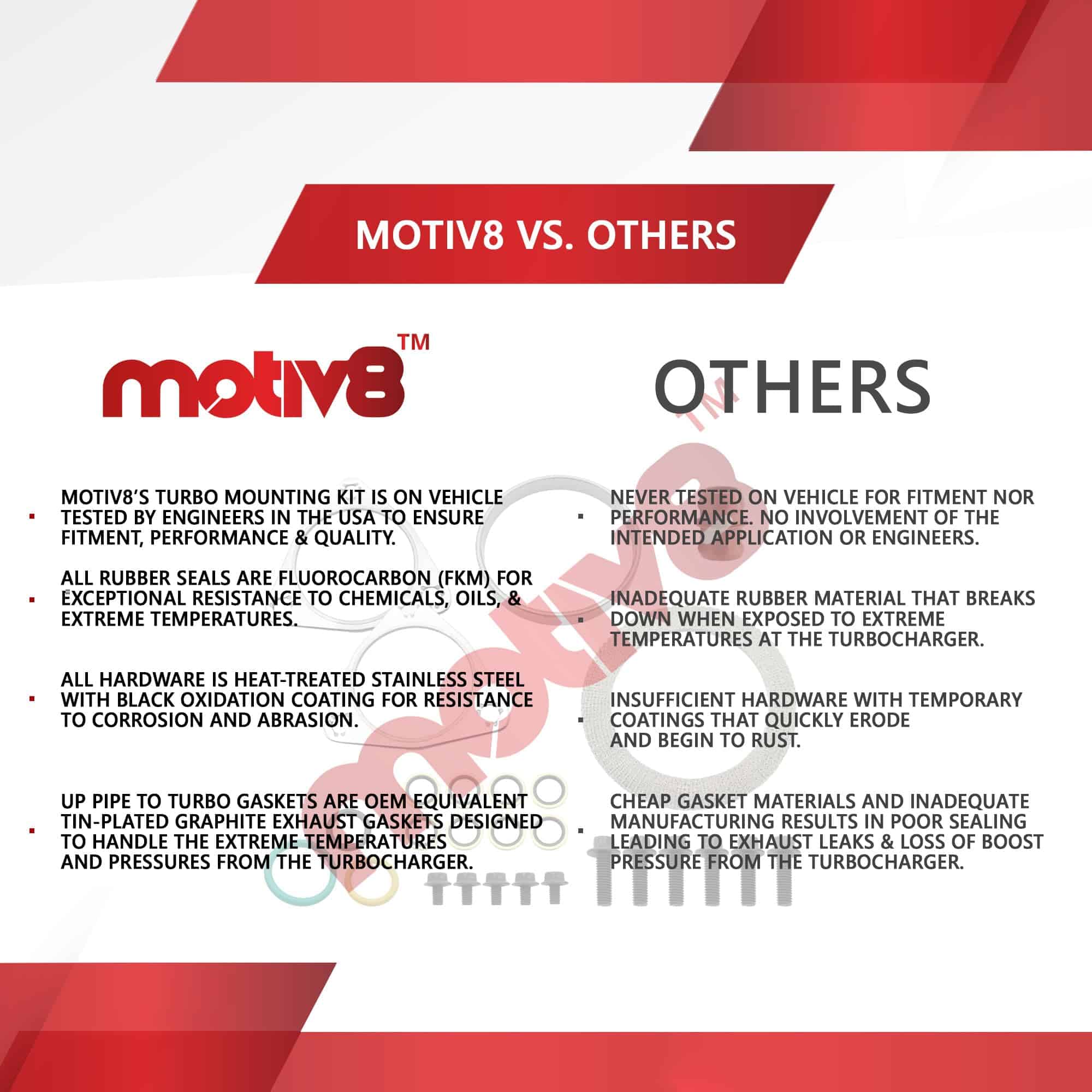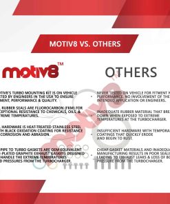 Nuestro kit de montaje de turbo fue diseñado con precisión por dedicados ingenieros automotrices en EE. UU. para incluir solo los materiales de más alta calidad para brindarte un ajuste perfecto y un excelente rendimiento.
