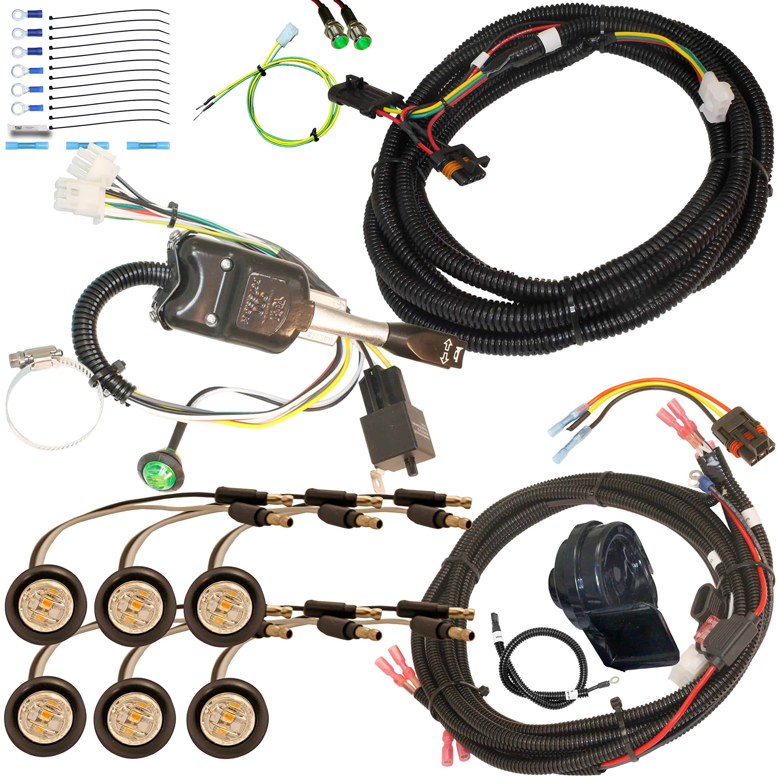 Los intermitentes delanteros con lente clara se iluminan de ámbar al seleccionarlos y se montan fácilmente en un orificio de diámetro 3/4″ (3 por lado). El arnés se alimenta fácilmente a través del tablero de control donde se conecta al arnés del interruptor.