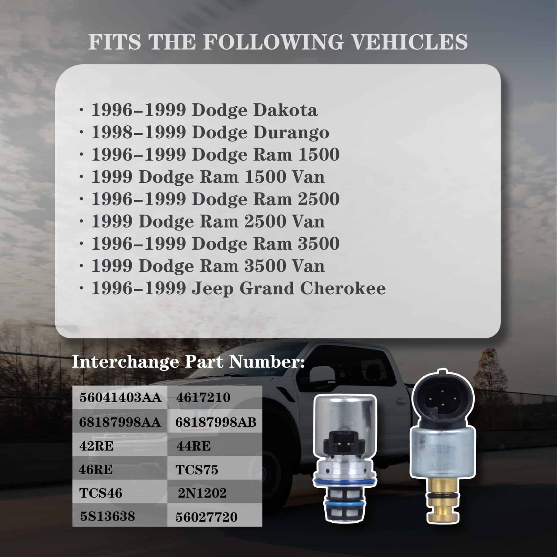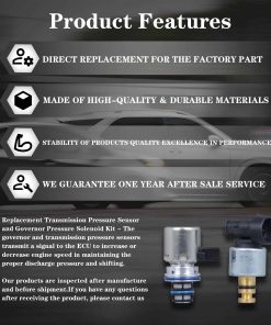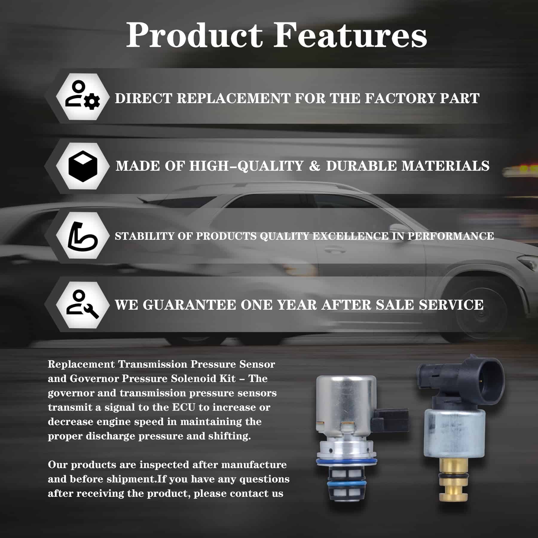 Kit de Sensor de Presión de Transmisión y Solenoide de Gobernador compatible con varios modelos de Dodge, Jeep y Chrysler. Incluye 1 Sensor de Presión de Gobernador y 1 Solenoide de Gobernador. Fácil instalación que te permite reemplazar las partes por ti mismo, ahorrándote tiempo y dinero. Ofrecemos un servicio post-venta completo, por lo que si tienes problemas con el producto, contáctanos para obtener una solución. Antes de comprar, asegúrate de que las piezas son compatibles con tu vehículo.