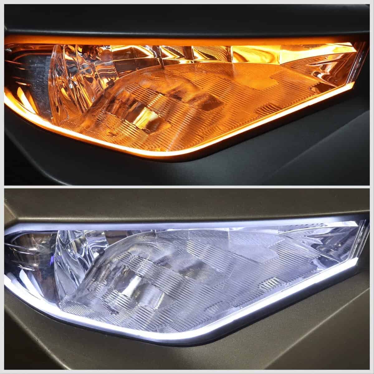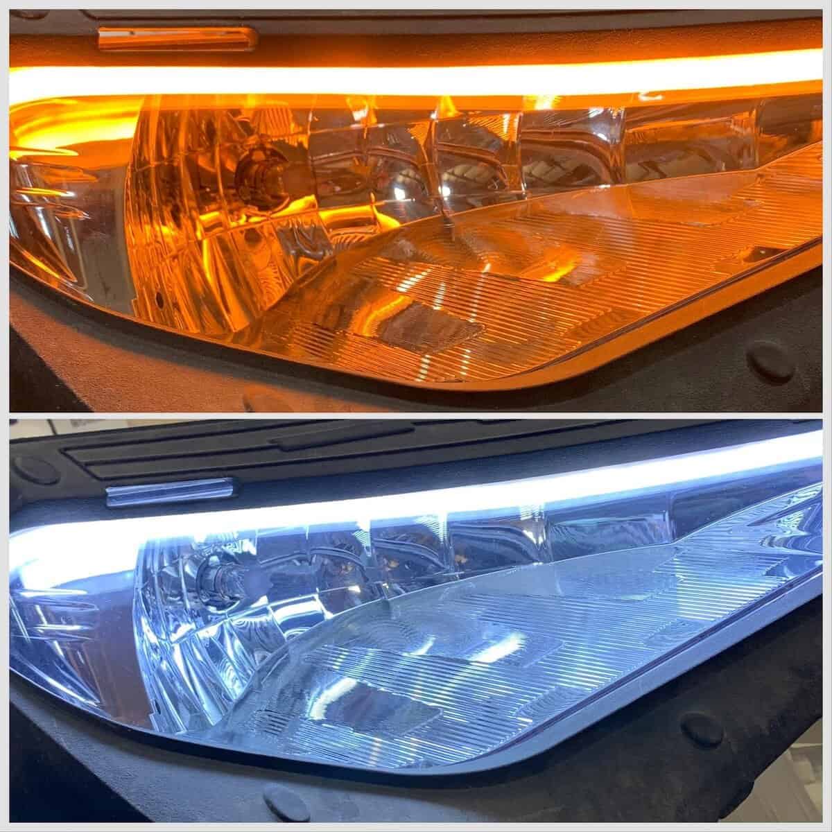 Los tubos LED secuenciales delanteros simplemente se presionan en su lugar encima o debajo del faro. (preferencia personal) y proporcionan una función de señal de giro ámbar secuencial fluida, así como luces diurnas opcionales (blancas)