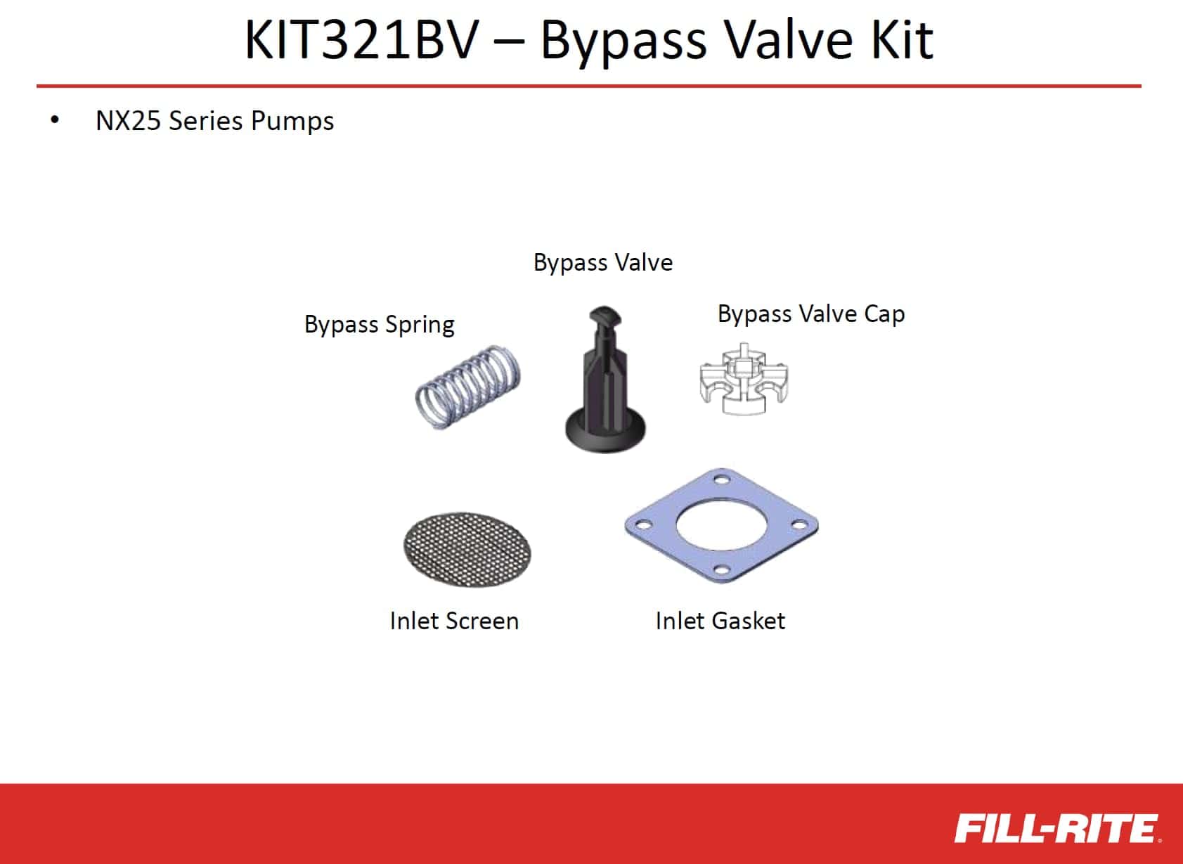 Las bombas Fill-Rite son productos fáciles y sin estrés para reparar y los kits son un método económico y simple para extender la vida útil de su bomba. Con nuestras piezas OEM certificadas, puede solucionar su problema y volver a estar en funcionamiento con muy poco tiempo de inactividad. El kit de servicio de derivación Fill-Rite KIT321BV es para todos los modelos de la serie NX3200 con la función Nextec Intelligence. Otros kits de la serie NX3200 incluyen KIT321RK, KIT321BG, KIT321SW y KIT321PC.