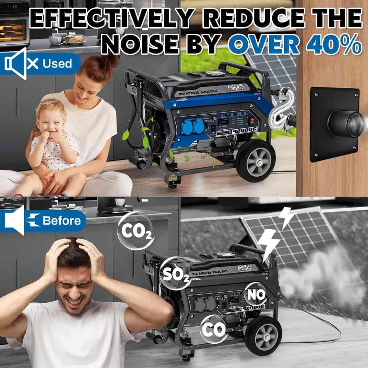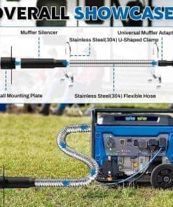1. Kit de Silenciador de Escape de Generador con Extensión y Placa de Montaje Aislada a Través de la Pared, diseñado para ser compatible con la mayoría de generadores portátiles. Este kit todo en uno incluye una placa de montaje aislada a través de la pared que le permite ventilar de forma segura el escape mientras reduce significativamente los niveles de ruido en hasta un 55%. Perfecto para acampar, hacer cola en coche o energía de respaldo en el hogar, esta solución innovadora garantiza seguridad y comodidad sin sacrificar rendimiento.