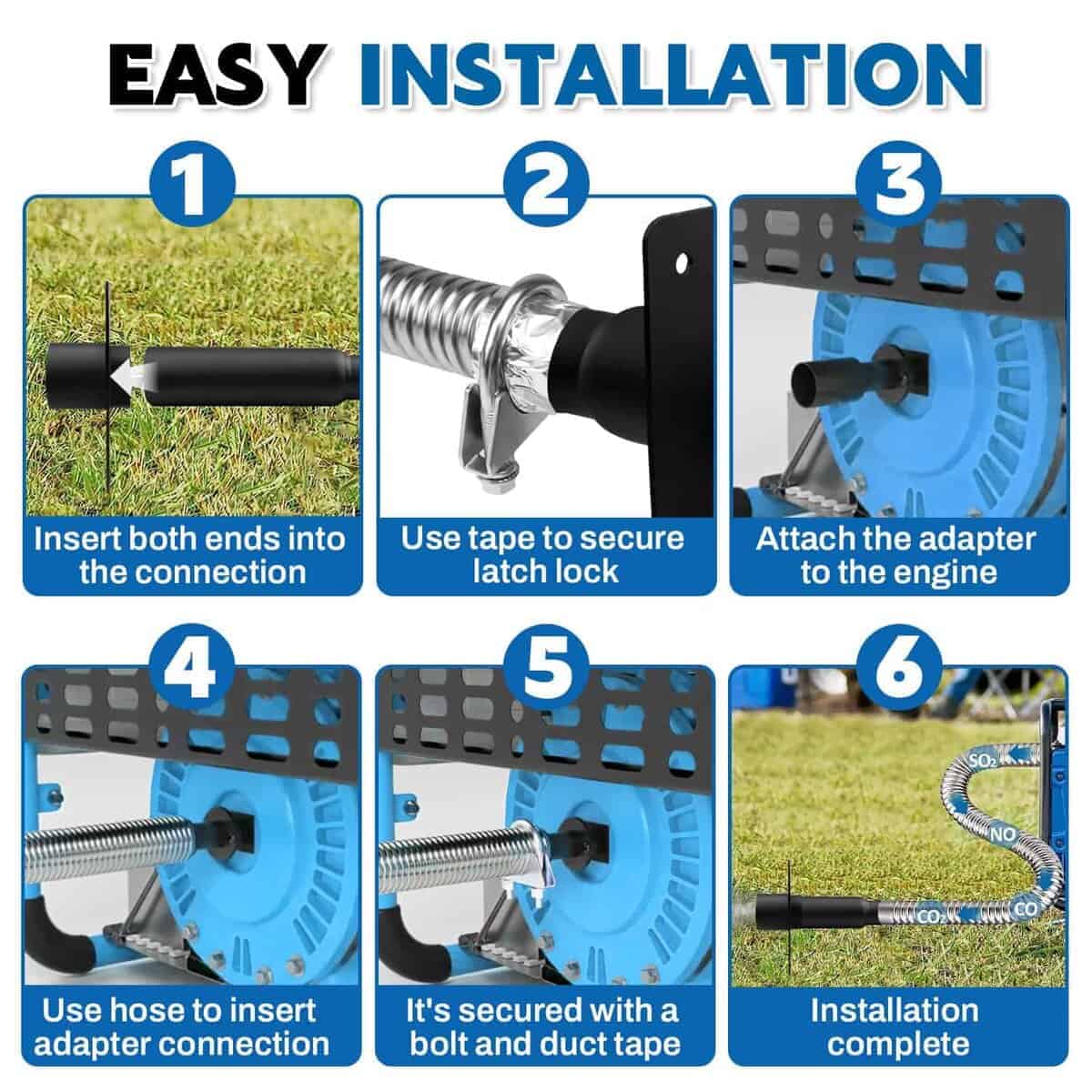 5. Proceso de Instalación Fácil, el kit de extensión y silenciador de escape de generador con instrucciones claras y todos los componentes necesarios incluidos, configurar su kit de silenciador de escape de generador con extensión es rápido y sin problemas, lo que le permite disfrutar de un generador más silencioso en poco tiempo.
