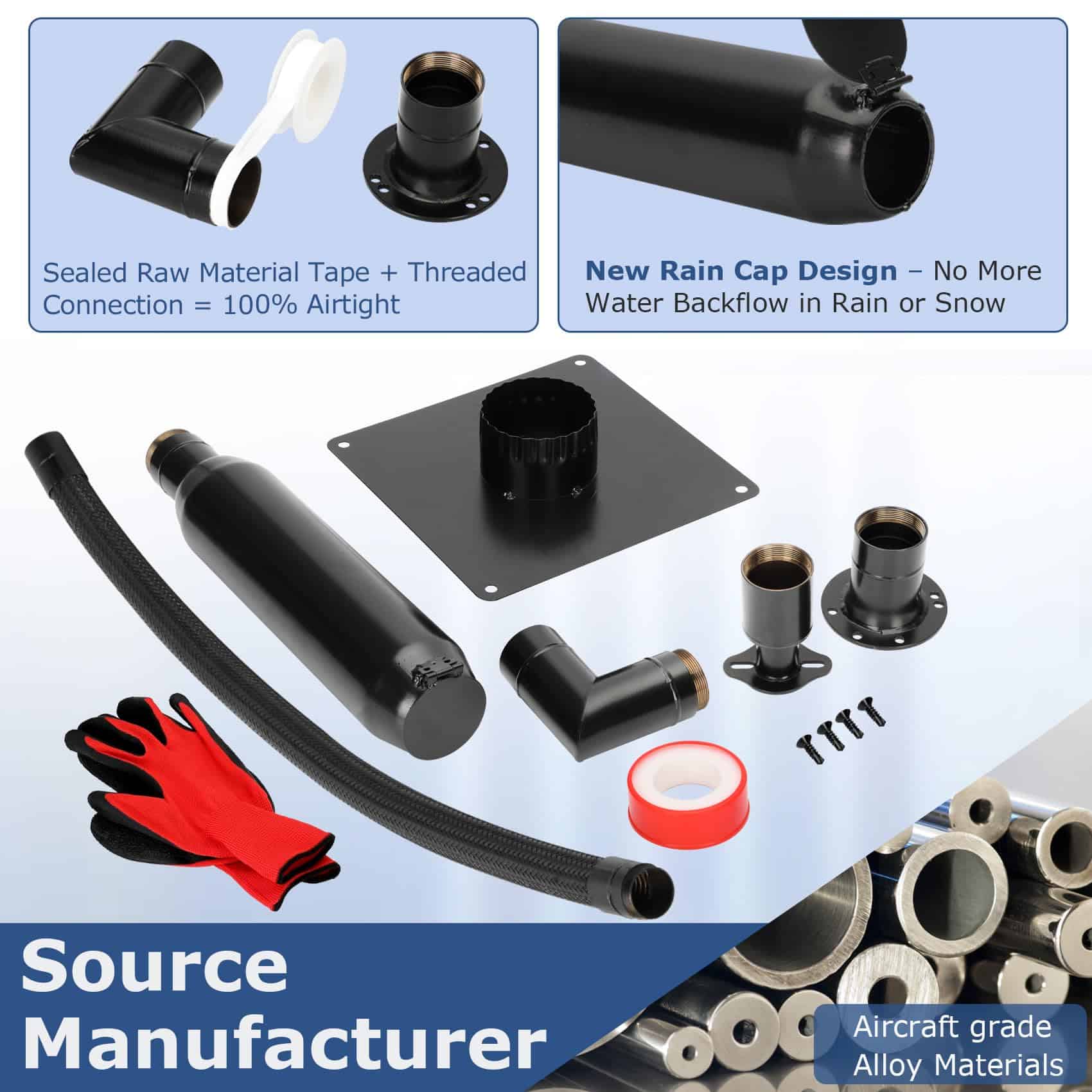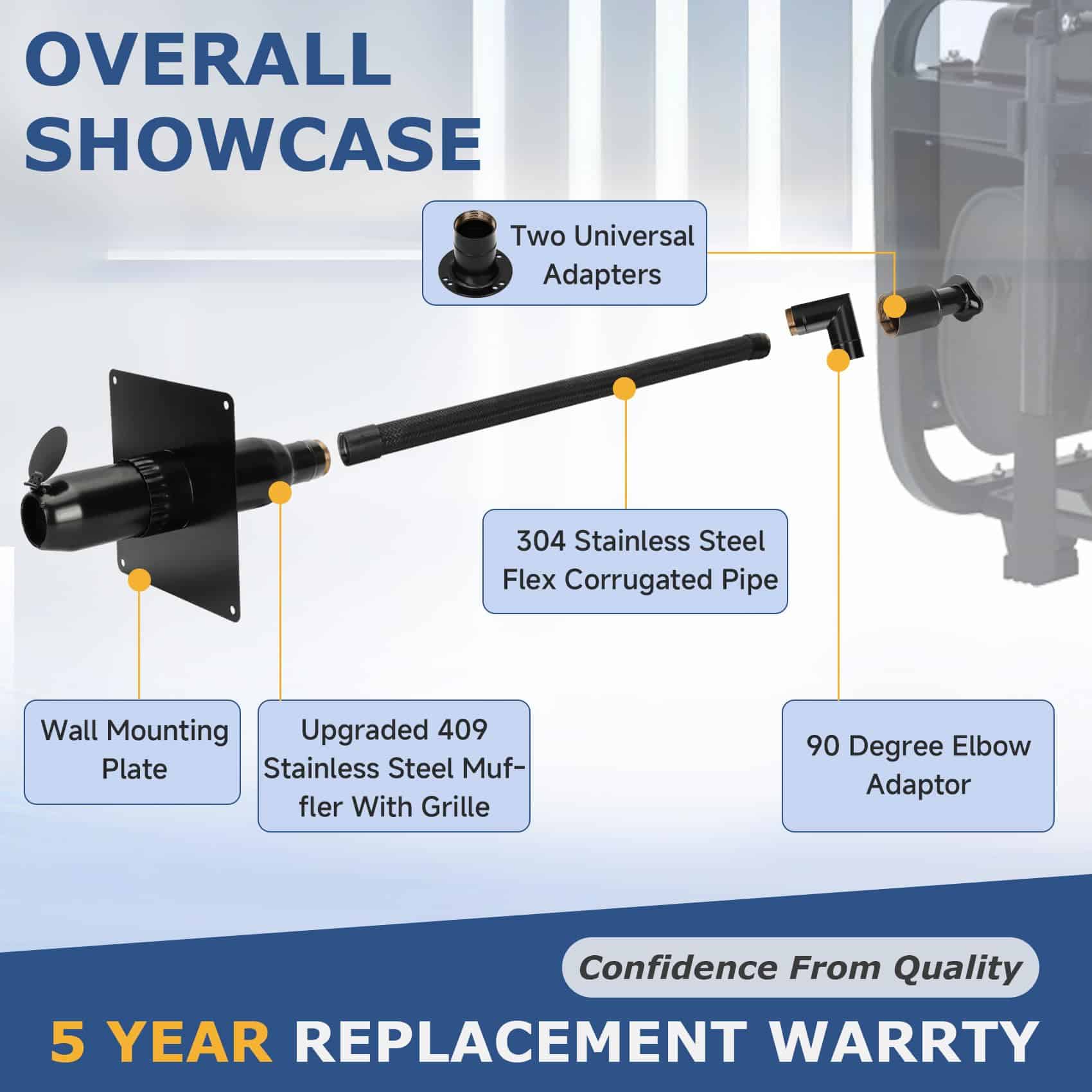 Lo que distingue a este kit es el sentido de control que le brinda. No solo está reduciendo el sonido y gestionando las emisiones, está recuperando su entorno. Puede hablar con su familia mientras el generador está en funcionamiento. Puede usar la energía sin recibir quejas de los vecinos. Puede guardar su generador sin preocuparse de que la lluvia arruine la salida del escape. Y puede hacer todo esto sabiendo que los materiales están construidos para durar, respaldados por una garantía de 5 años.