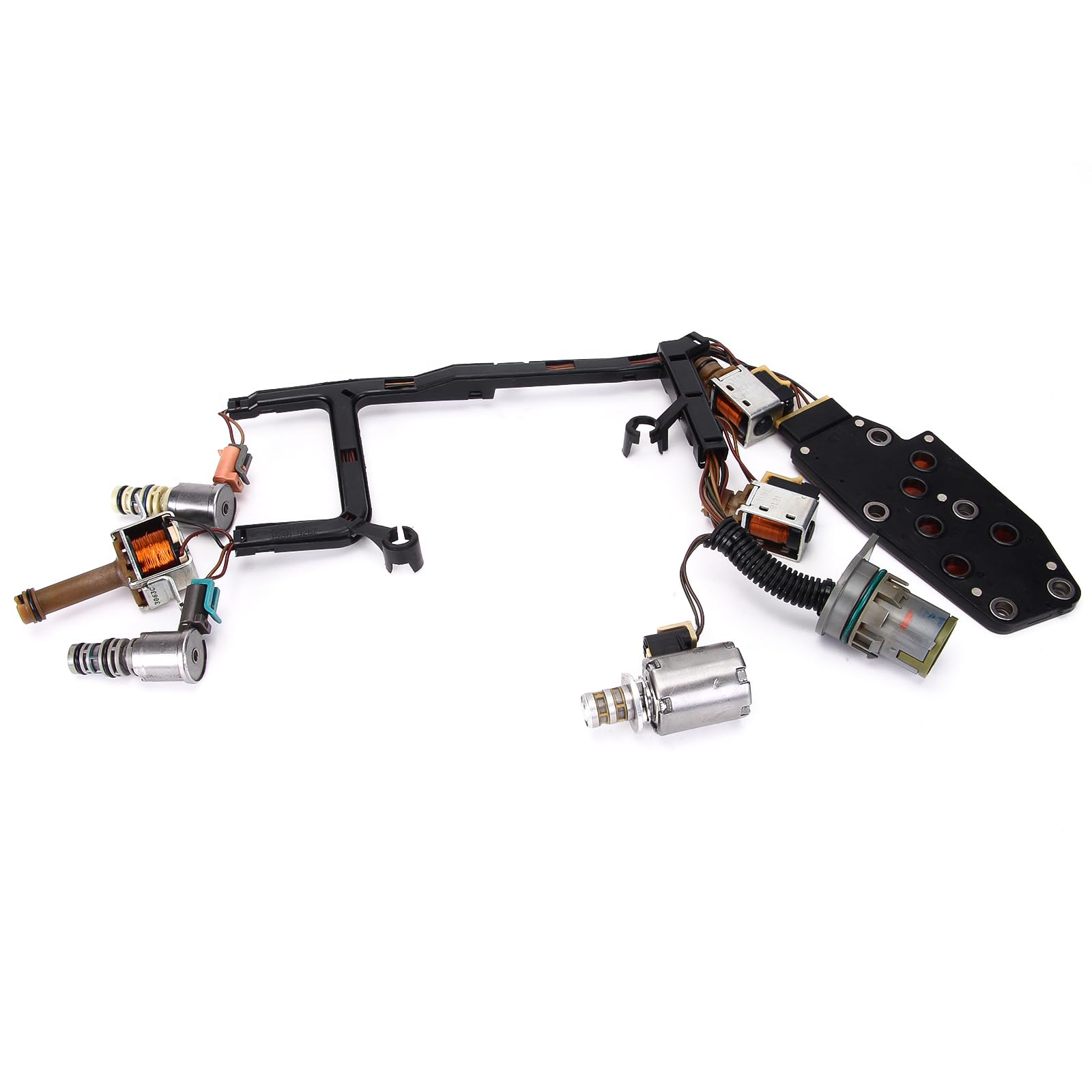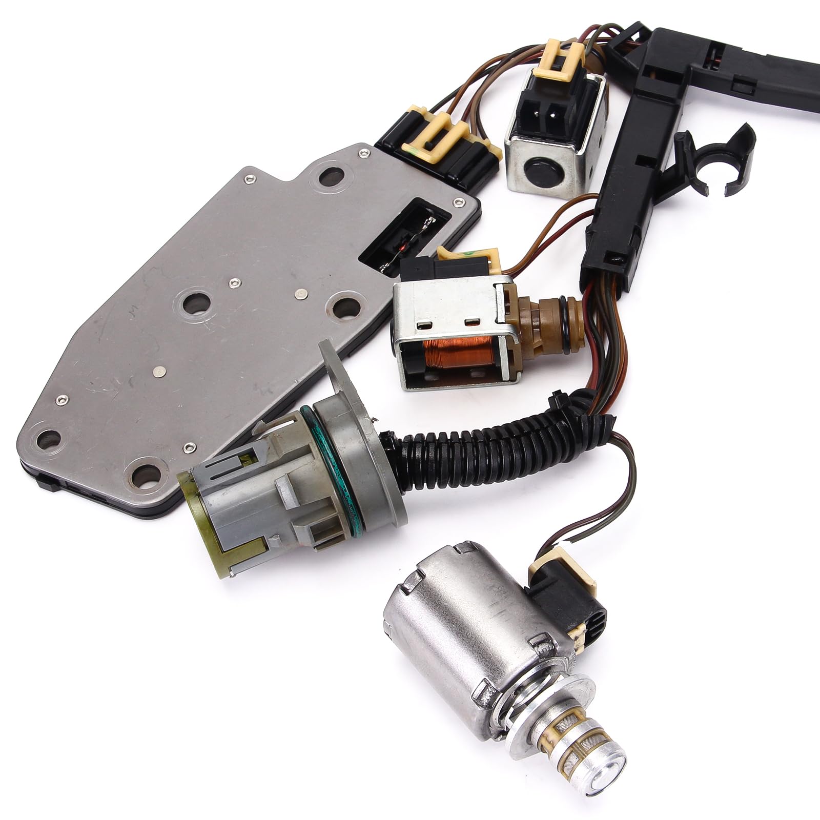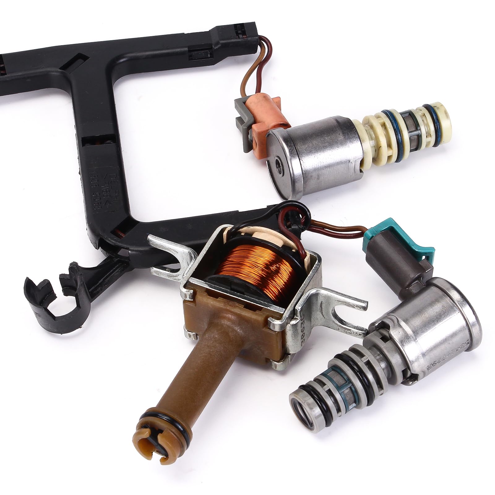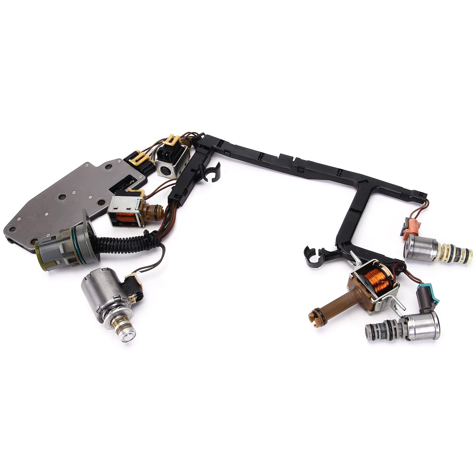 Paquete Incluye: 1x Válvula de solenoide de cambio A 1x Válvula de solenoide de cambio B 1x Válvula de solenoide de reducción 3-2 1x Válvula de solenoide de control de presión EPC 1x Válvula de solenoide PWM 1x Interruptor de presión de colector 1x Válvula de solenoide TCC con arnés de cableado 1x Filtro (SHALLOW) con sello de goma 1x Junta de cárter