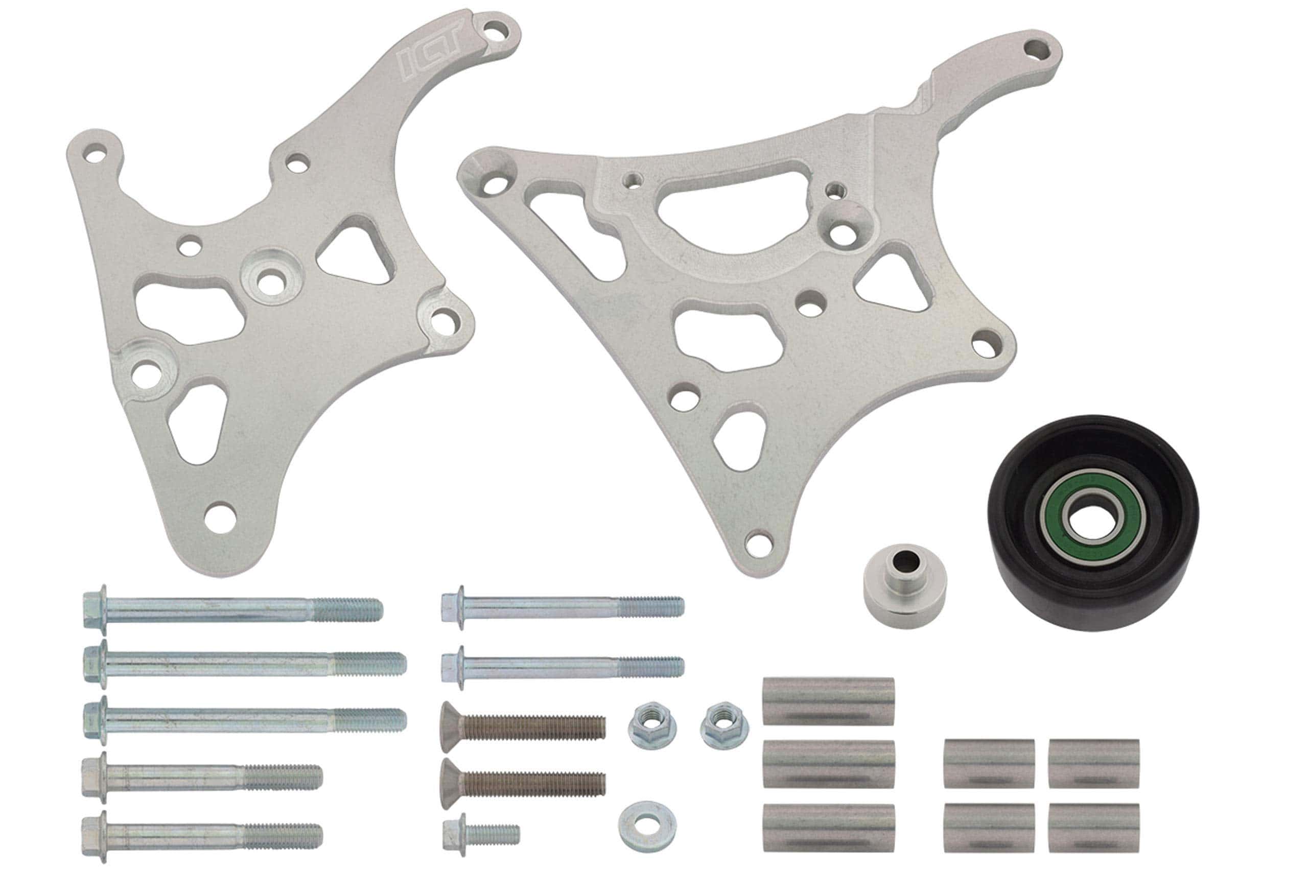 Kit de Soporte de Alternador y Bomba de Dirección Asistida para Camión br / Requiere: polea de cigüeñal de camión/SUV (o LS3/L99 Camaro) (12634105) br / Requiere: bomba de dirección asistida y polea de 1998-2002 LS1 Camaro (63105 y 12559885) br / Alternador: (19244779) (no encajará en Corvette/CTSV o alternadores de 2010 en adelante de Camaro con patrón de pernos grande), encajará en cualquier otro alternador de vehículos con motor LS con cualquier amperaje. br / Hecho en Wichita, Kansas, de aluminio billet de grado aeroespacial producido en EE. UU. br / Incluye: soporte de alternador, soporte de bomba de dirección, polea lisa y tornillos de montaje br / Encaja en: todos los motores LS de GM y bombas de agua br / Si necesita extender la conexión de su arnés de alternador, utilice ICT WEALT30-36 (de 4 pines) o WEALT40-36 (de 2 pines) br / Requiere: correa 730K6 (73.0 pulgadas) cuando se usa con alternador de 105 amperios (19244779) (145/160 amperios requieren aproximadamente 1/2″ de correa más larga)