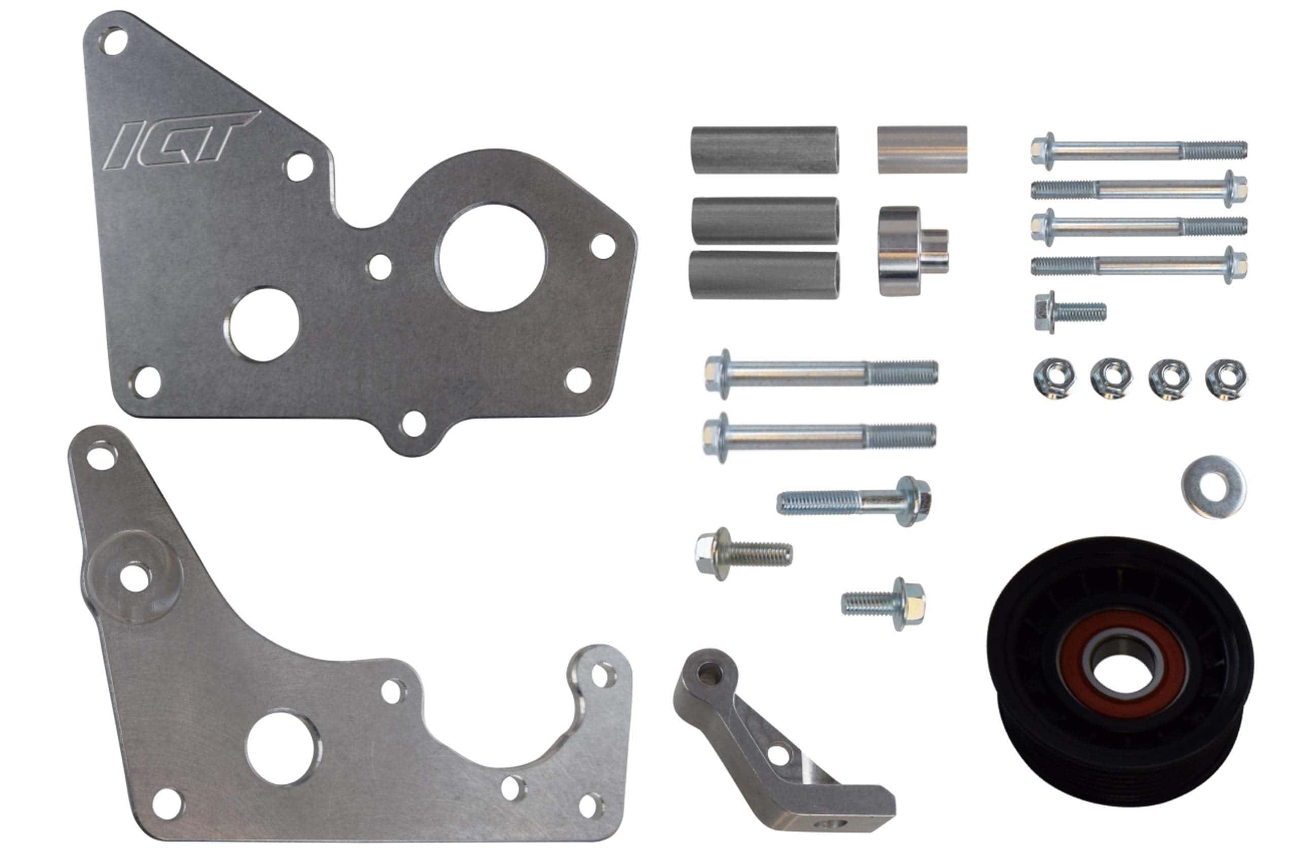 - Compatible con: todos los motores GM de la serie LS Compatible con: Polea de cigüeñal de Corvette (cualquier año LS) (o CTSV/G8/SS) (ICT BAL100) Compatible con: bomba de dirección hidráulica y polea de LS1 Camaro 1998-02 (ICT 551394R & ICT 551395) Hecho en Wichita, Kansas De Aluminio Billet de Grado Aeroespacial Producido en EE. UU. Incluye: soportes y hardware de montaje Longitud de la correa con el alternador estándar de 105 amperios y soporte 551750-1: 2180K6 (85,8 pulgadas)