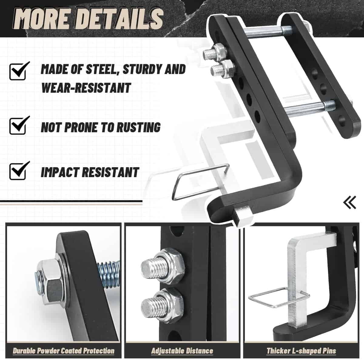 1. Aplicación: Para Enganche Equalizador-Distribución de Peso-6000 lbs a 14000 lbs. Apto para enganche de control de oscilación Equalizer/Fastway e2/Lusheer con marcos de remolque de 4″, 5″. También se adapta a remolques universales, remolques de tiro trasero, como remolques de RV/Camper/ caballos/ carga/ botes/ utilitarios, etc.